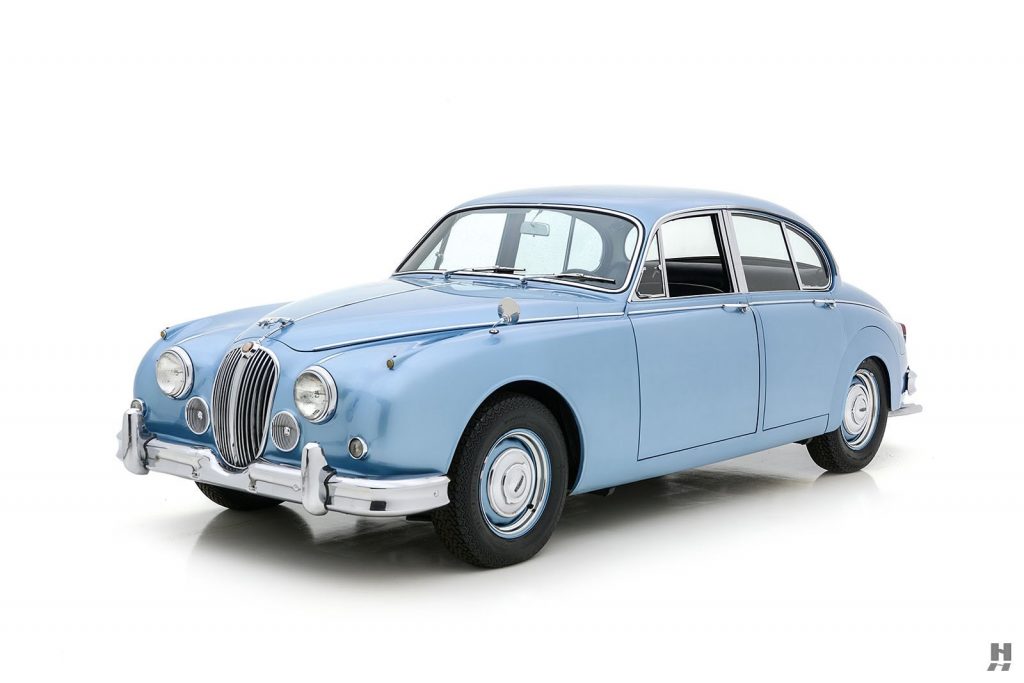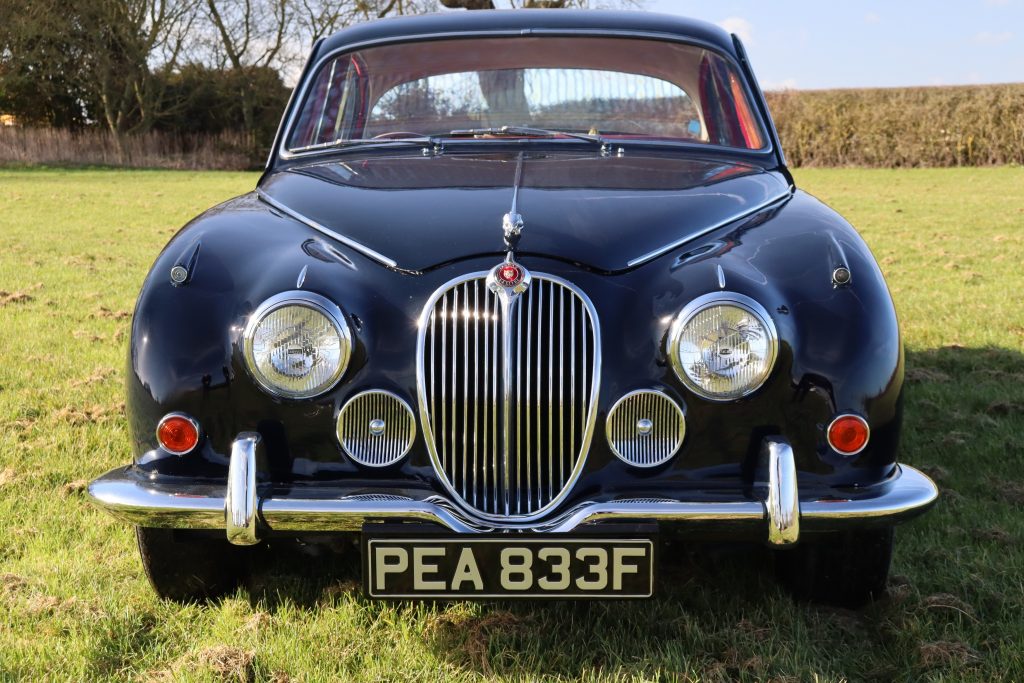 La nouvelle berline d’entrée de gamme Jaguar reprend la structure des 2,4 et 3,4 litres. Modifications : surfaces vitrées agrandies, montants moins larges, pare-brise plus grand, glaces latérales arrières agrandies de 16,5 cm en largeur, lunette arrière élargie de 8 cm et plus haute de 3 cm. Encadrements de vitres en laiton chromé, nouveau panneau de custode échancré à larges déflecteurs. Face avant avec phares antibrouillard en place des grilles, clignotants circulaires sur le devant des ailes, veilleuses sur le devant des ailes. Feux arrières agrandis.