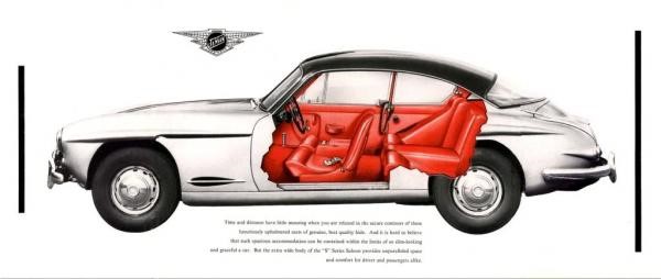 Cadre plate-forme à longerons (D.: 12,7 mm) et entretoises avec carrosserie en fibre de verre. Coupé 2 portes, 2+2 places, dessin Eric Neale (Cx 0,39).