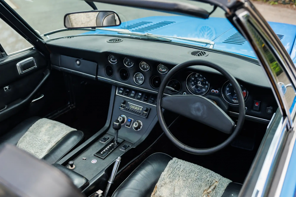 2311-1666 : 1975, Interceptor MK III Convertible, moteur 00286, Brienz Blue, filets rouge et argent, cuir noir.