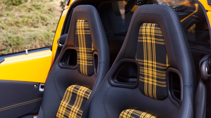 Tableau de bord garni de fibre de carbone, nouveaux sièges baquet, toujours fixes.
