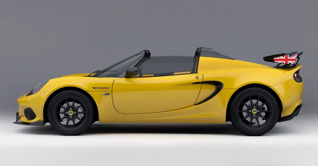 09/02/2021 : Elise Sport 240 Final Edition : moteur 1,8l compressé revu, 240 chevaux, 244 Nm, jantes aluminium forgé à 10 bâtons 16/17″, pneus Yokohama Y105.