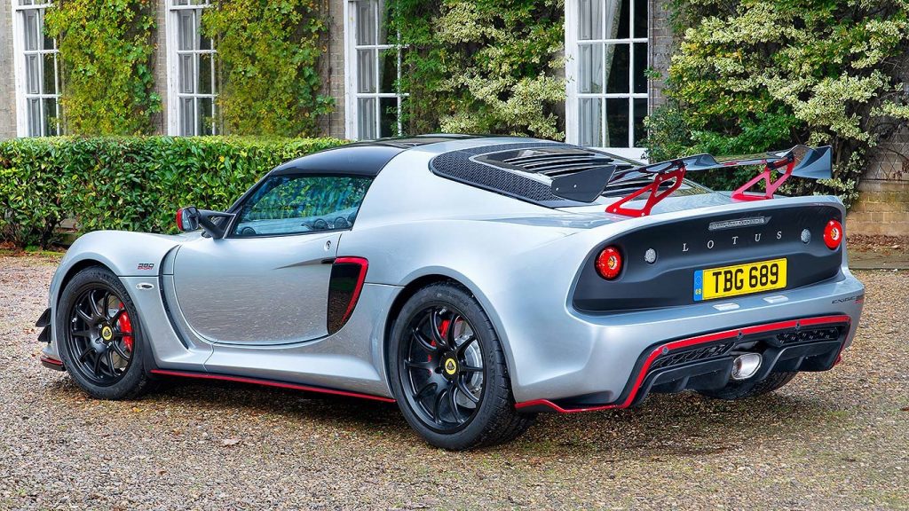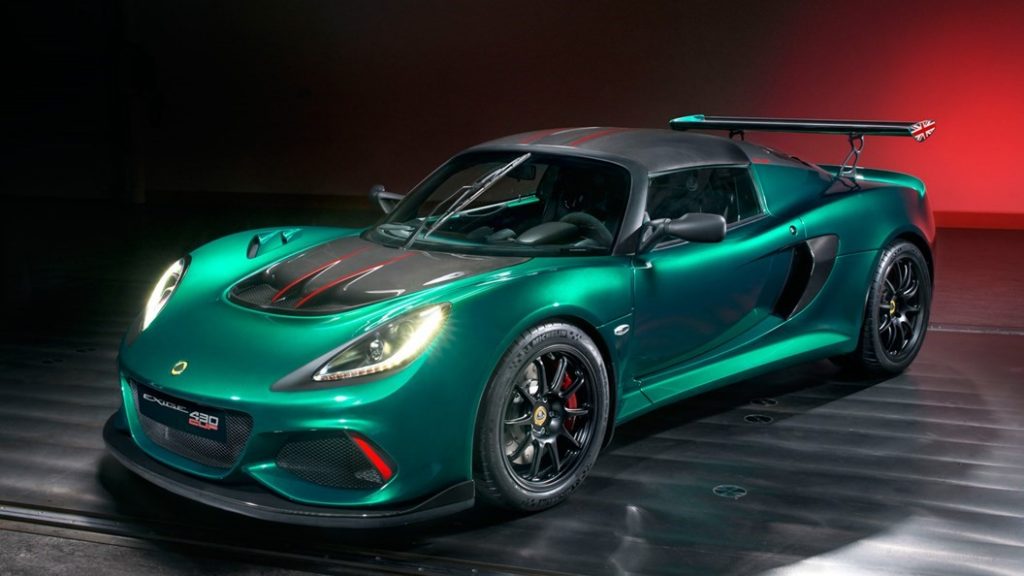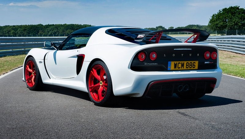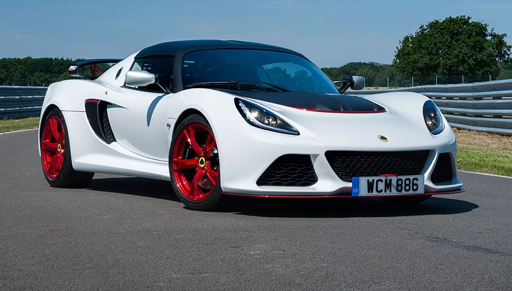 2018 : Arrêt de la version 1,6l. 04/05/2018 : Version Exige Sport 410 : se positionnant entre la Cup 430 et la Sport 350. Motorisation de la Cup 430, puissance abaissée à 410 chevaux pour 420 Nm. Nouvelle face avant qui sera standard sur toute la gamme avec prises d’air agrandies nouvelles canalisations d’air améliorant le refroidissement et diminuant la portance. Diffuseur avant, diffuseur arrière aluminium augmentant l’effet de sol, épures de suspensions reprises de la Cup 430. 1054 kg grâce à l’emploi massif de carbone.