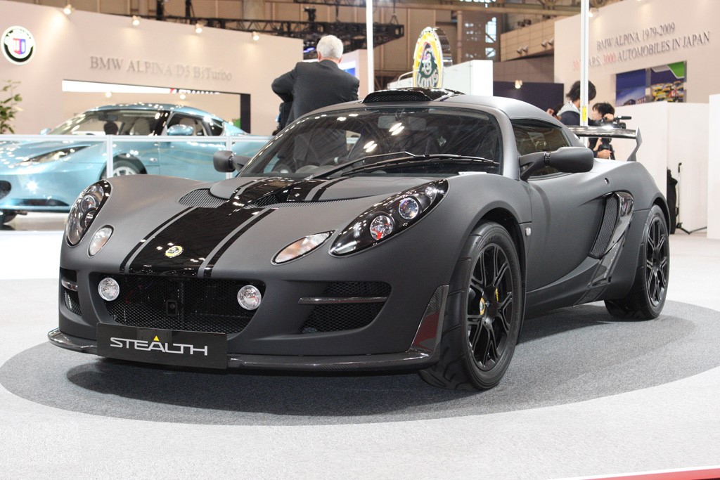 2009 : Salon de Tokyo (JAP) : Présentation des séries limitées Scura (Stealth pour le marché japonais) : moteur de l’Exige S260, embrayage renforcé, boîte de vitesses C64 à 6 rapports avec carter aluminium .diffuseur avant, échangeur, prises d’air latérales et console centrale en carbone, noir mat avec 3 filets noirs, intérieur avec frein à main et levier de vitesses en métal anodisé anthracite, inserts en carbone façon laque. Contrôle électronique de la traction et de la stabilité, différentiel électronique, amortisseurs réglables à 2 lois Öhlins, ressorts Eibach réglables, garde au sol réglable, jantes en aluminium forgé, pneus Yokohama 048LTS.