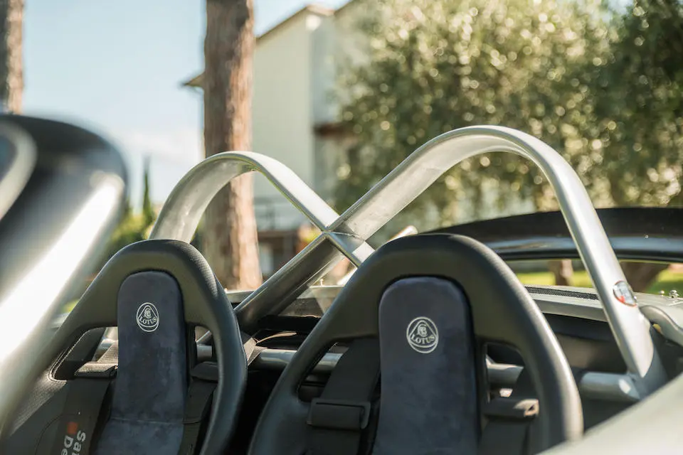 Le soubassement est repris de l’Elise 1ère série avec une carrosserie fermée et un arrière fuyant reprenant les principes de Kamm, une lunette arrière transparente laissant voir le moteur et un aileron arrière. Face avant avec diffuseur et prises d’air (masquées pour les voitures civiles), ailes et voies élargies. La voiture est fabriquée en 2000 et 2001.