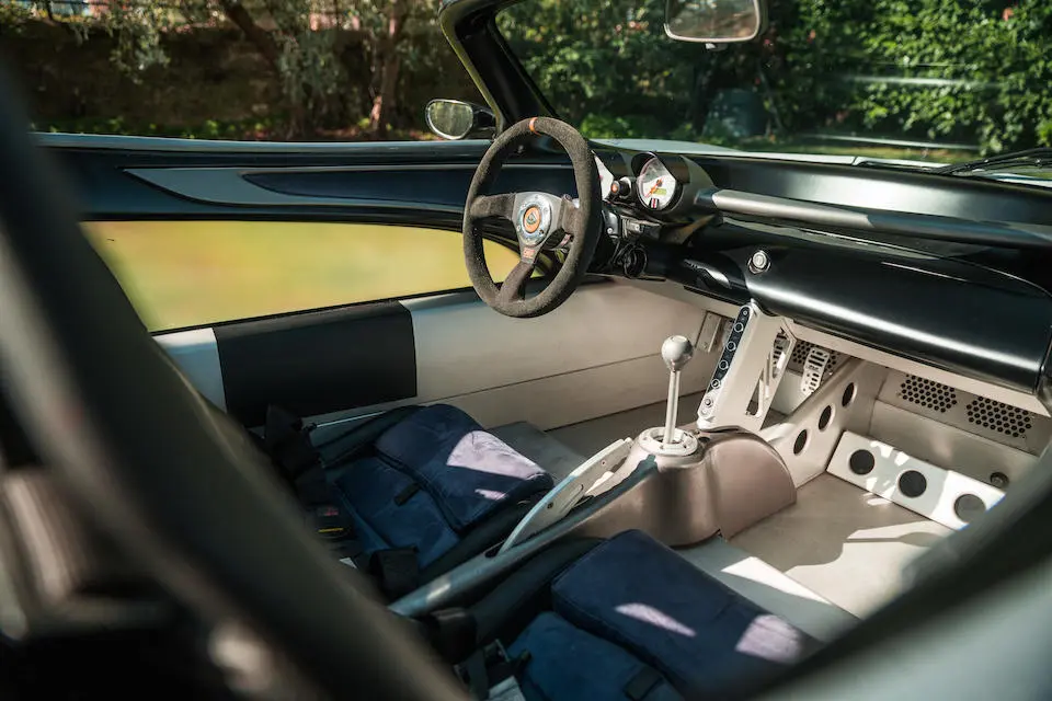 Finition sportive avec tableau de bord et inserts en aluminium, la voiture est équipée d’une climatisation et d’une radio avec lecteur CD, garnitures alcantara. Hardtop démontable disponible en option.