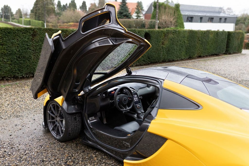 SBM12ABB2FW000338 : 2015, P1, jantes en alliage léger Stealth grises, étriers argent, Volcano Yellow, cuir et alcantara Carbon Black à passepoils Cadmium Yellow.