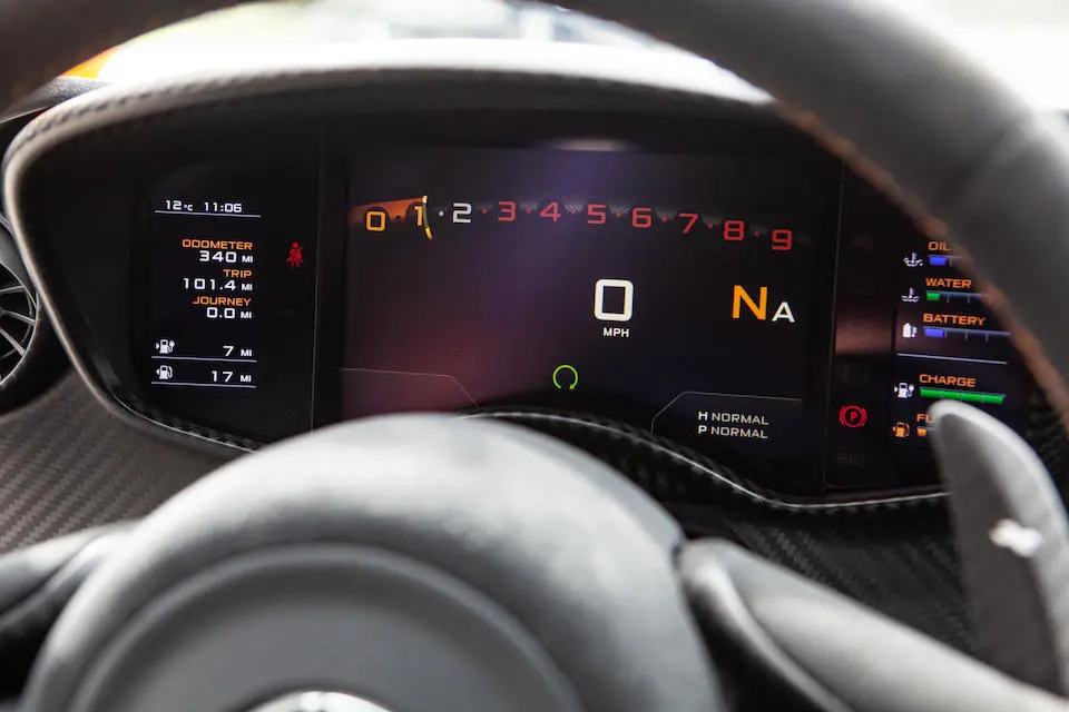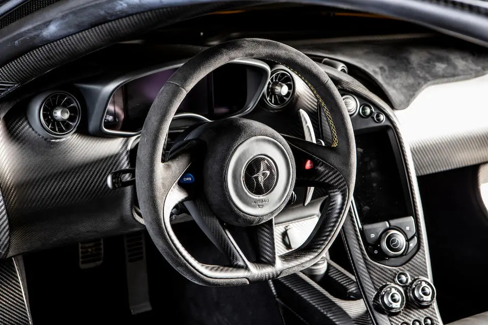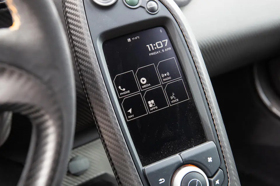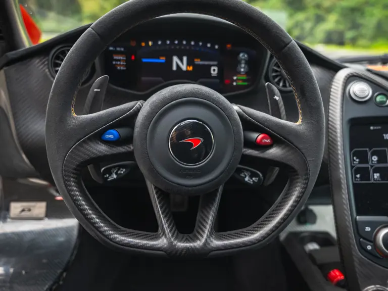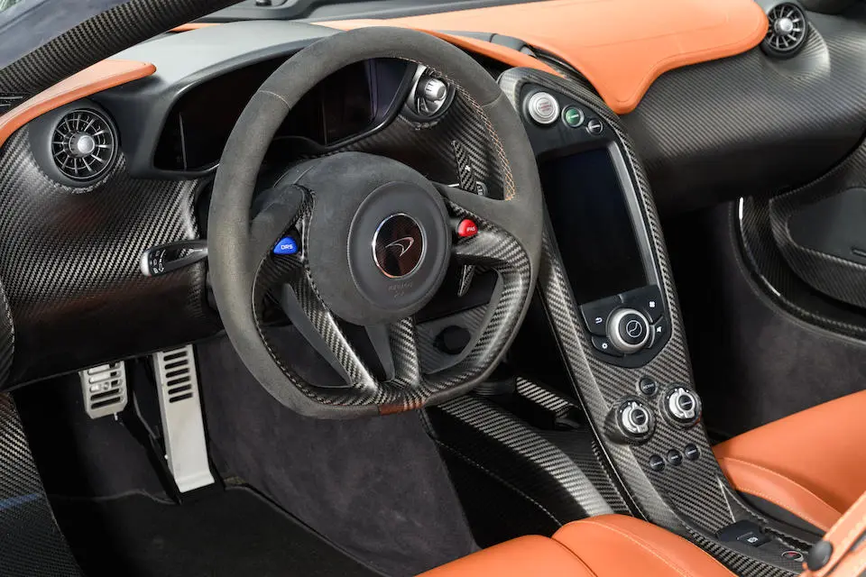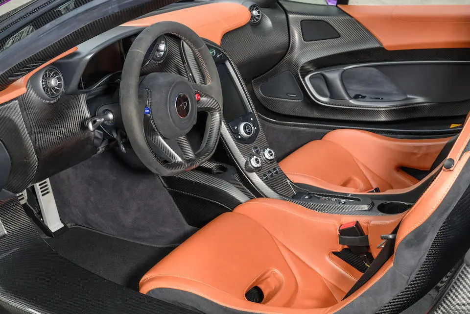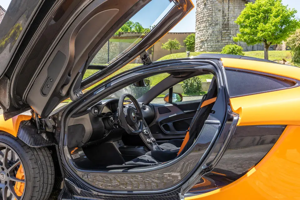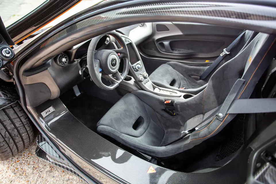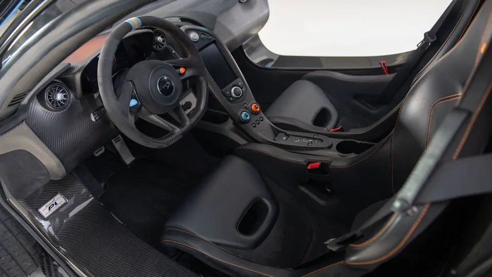 SBM12ABA0FW000233 : 2015, P1 Coupé, étriers de frein Mc Laren Orange, inserts en carbone, Kilo Grey, alcantata noir à passepoil orange.