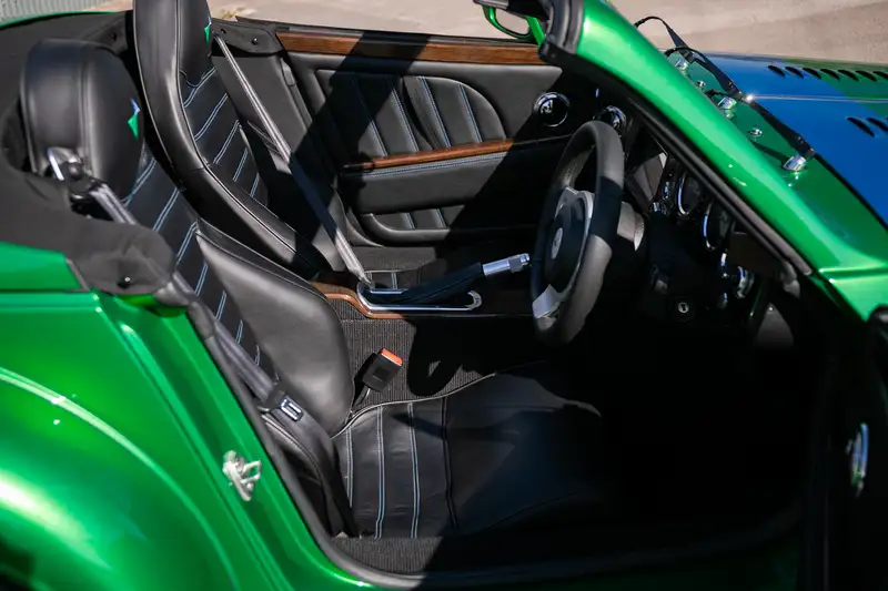 SAE9AEROMAX4810043 : 2009, Aéromax Coupé, Supersports Zurillic Blue Metallic, cuir Yarwood Kensington Penfold (rouge), GPS, haut-parleurs spécifiques, sièges montés directement sur le plancher, pédalier reculé de 2 cm vers la cloison pare-feu, pas de repose-pied passager, marchepieds avec inscription « Defendall ».