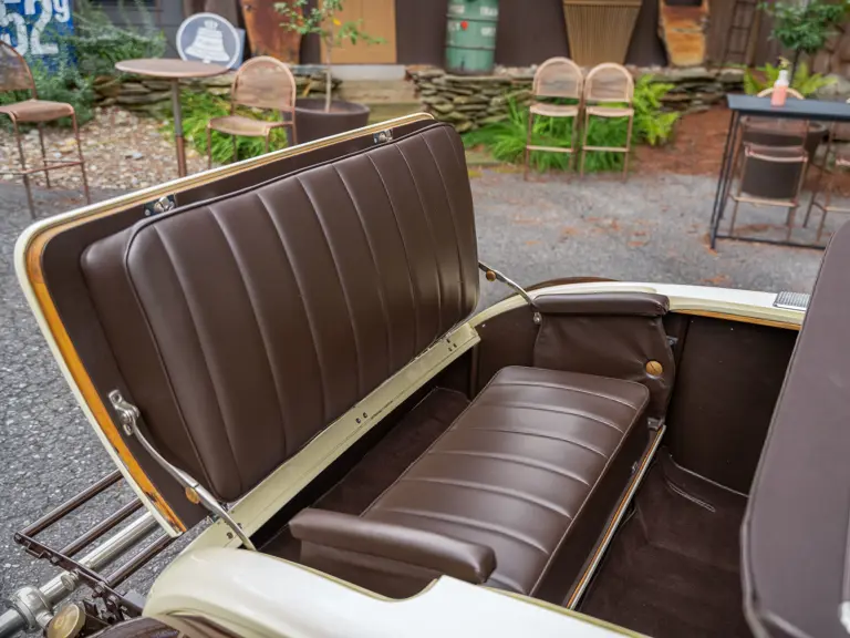 S 329 FM : 1927, Kenilworth Sedan par Brewster, moteur 20297. Gris clair, initiales de l’épouse de Ford sur les portières, séparation, stores en bambou.