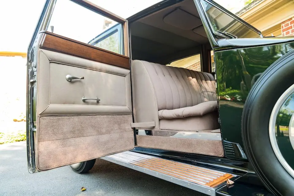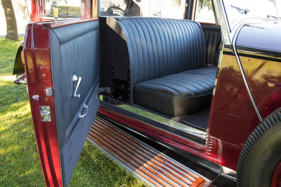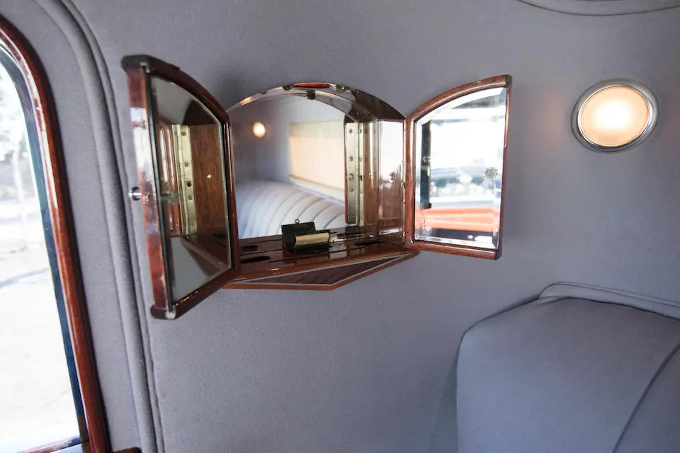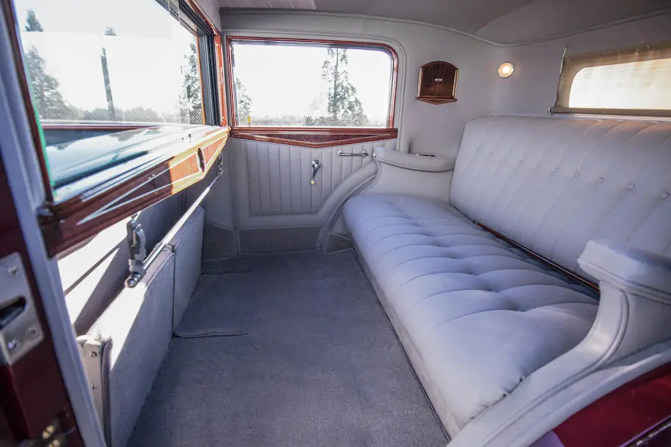 218 AMS : 1934, Special Town Car par Brewster, moteur U45J, chromes plaqués argent, pare-brise en V, accessoires intérieurs plaqués or.