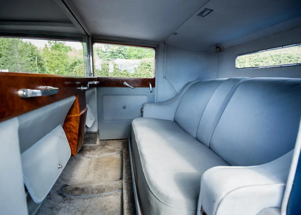 3 AX 85 : 1936, Touring Limousine par J.S. Inskip (livrée 24/10/1936), moteur B74Y, séparation, avant cuir noir, volant blanc, chauffage à l’arrière, sièges occasionnels repliables, intercom, montre électrique, nécessaire de maquillage.