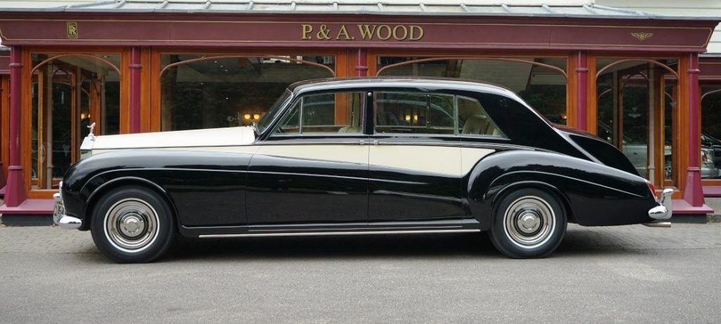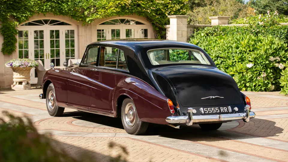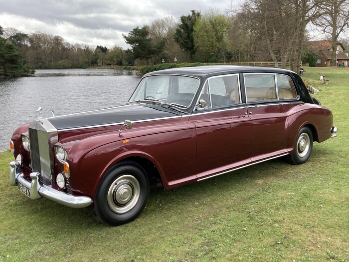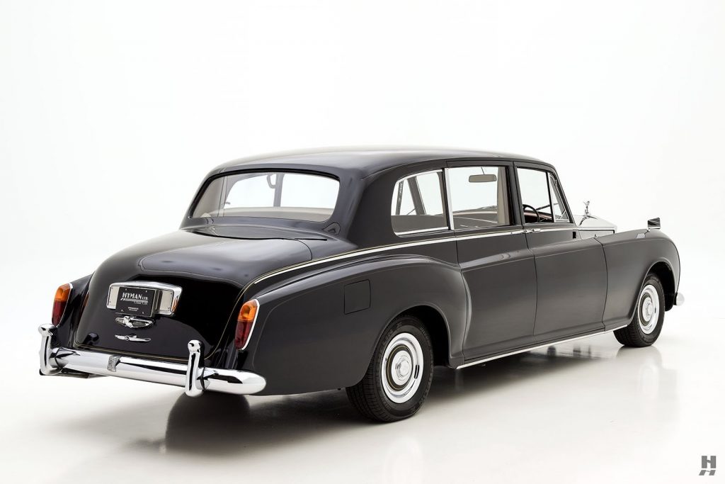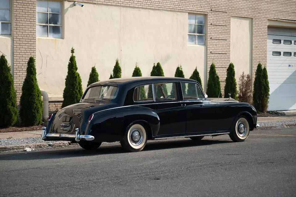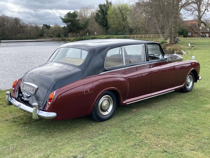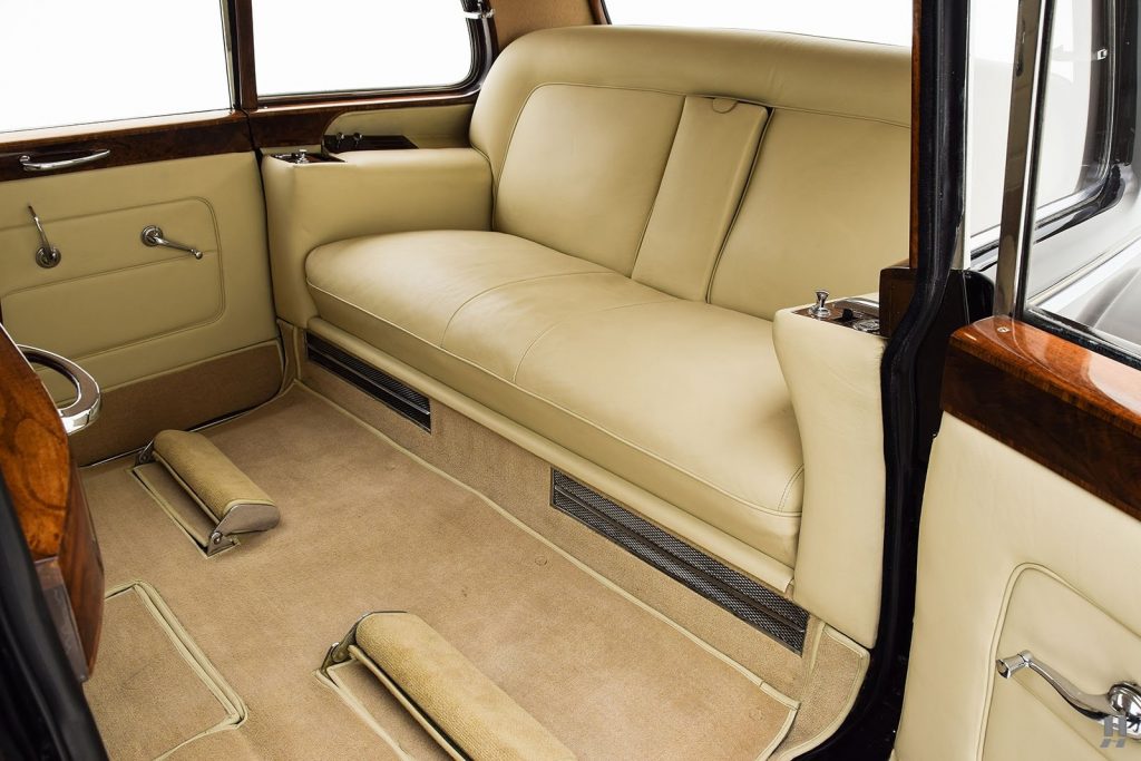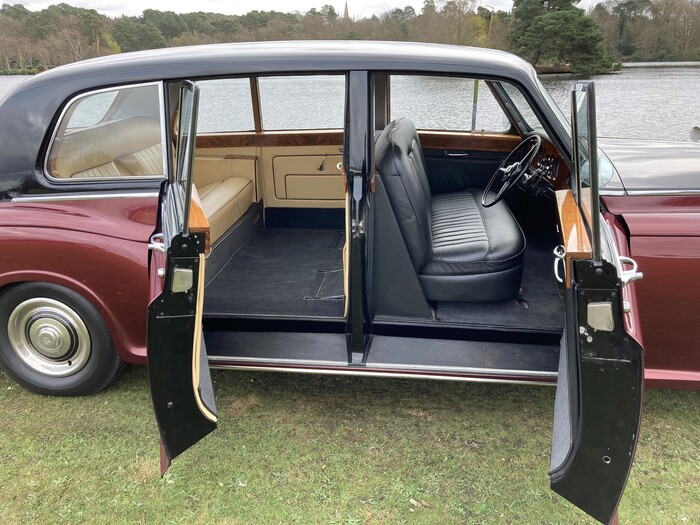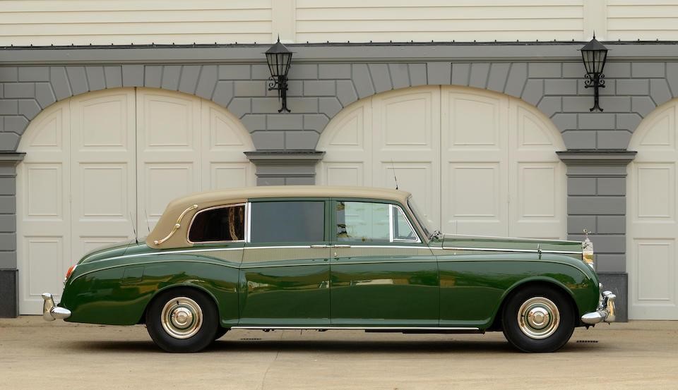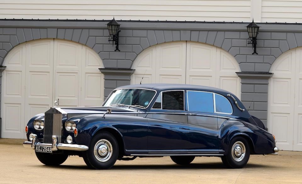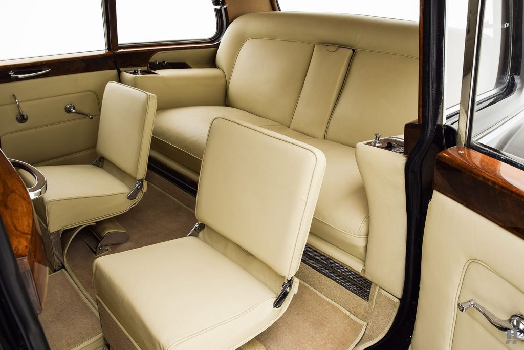 5 AS 69 : 04/1960, Phantom V Limousine par Park Ward, moteur PV34A, séparation à commande électrique, cocktail cabinet avec 2 carafes et 4 verres au centre de la séparation, encadré par 2 sièges d’appoint repliables, porte-drapeau, avertisseur sonore haute fréquence, Mason’s Black, tissu marron à l’arrière,
