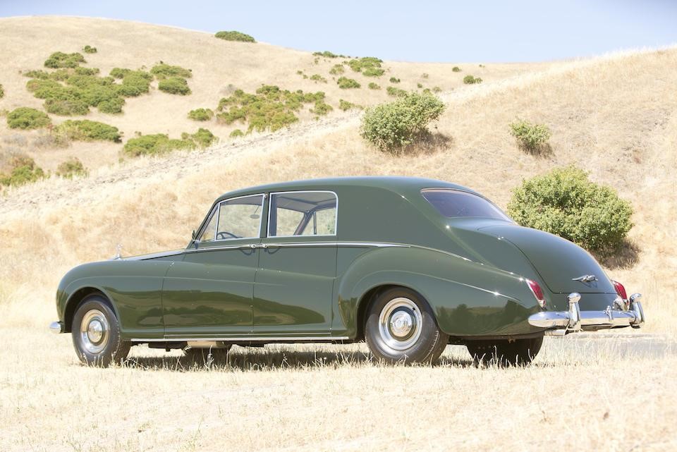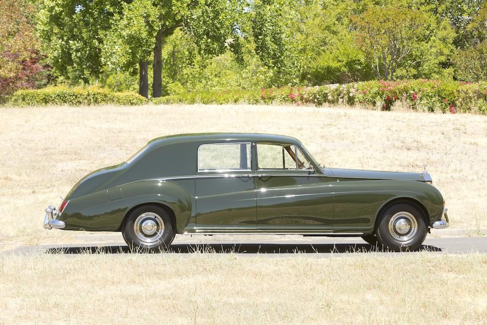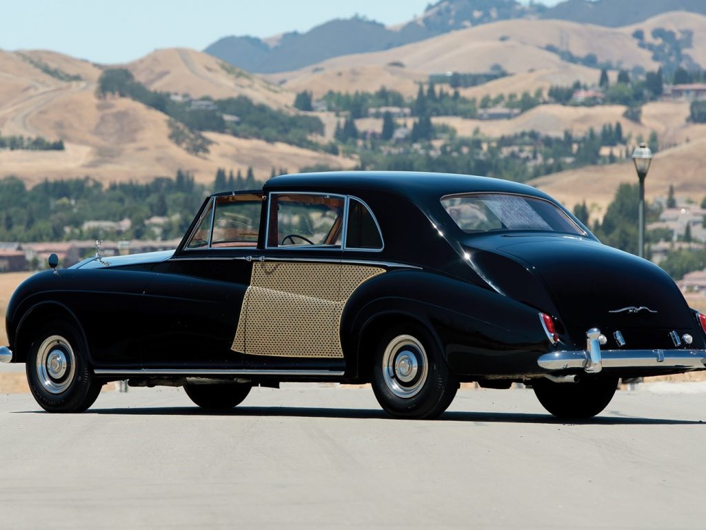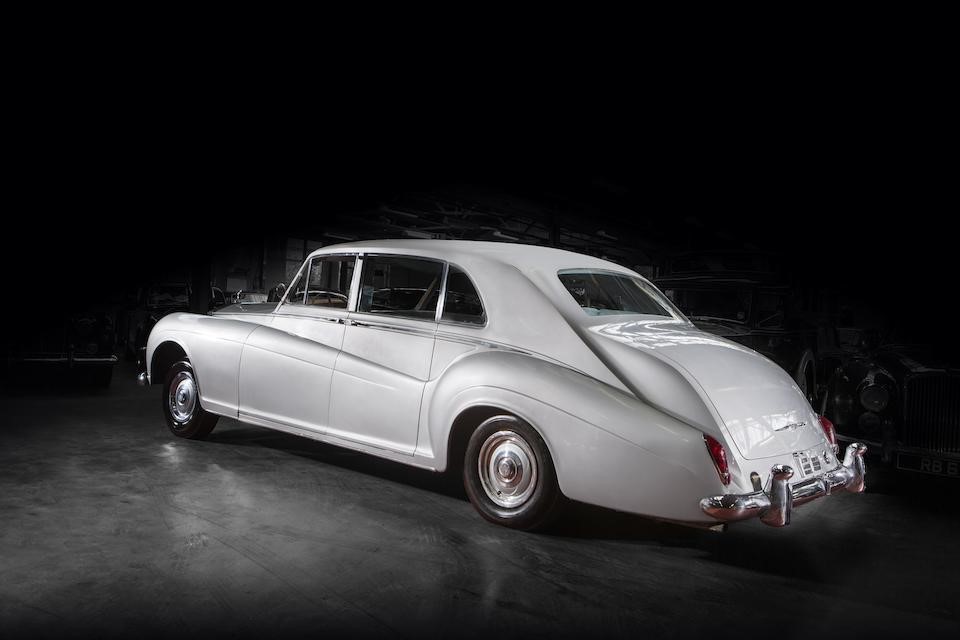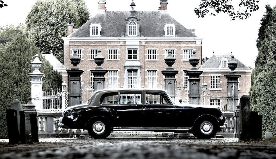 5L AT 82 : 1961, Special semi-razor Edge Touring Limousine par H.J. Mulliner & Park Ward (dessin 7519, caisse 6447), 1/8 de ce type, moteur P2129, séparation à commande électrique, vitres électriques, radio à l’arrière, cocktail cabinet arrière avec 4 verres et 2 carafes, Shell Grey/Noir, tissu beige à passepoils en cuir.
