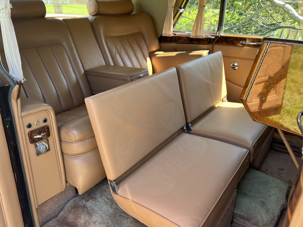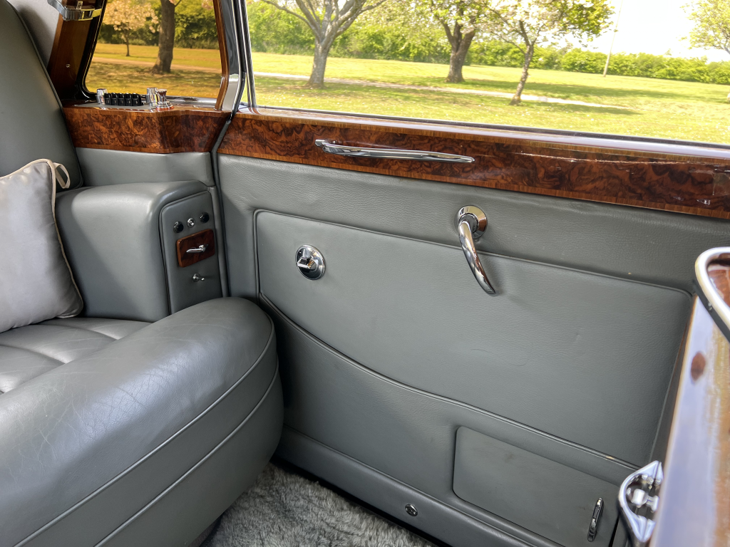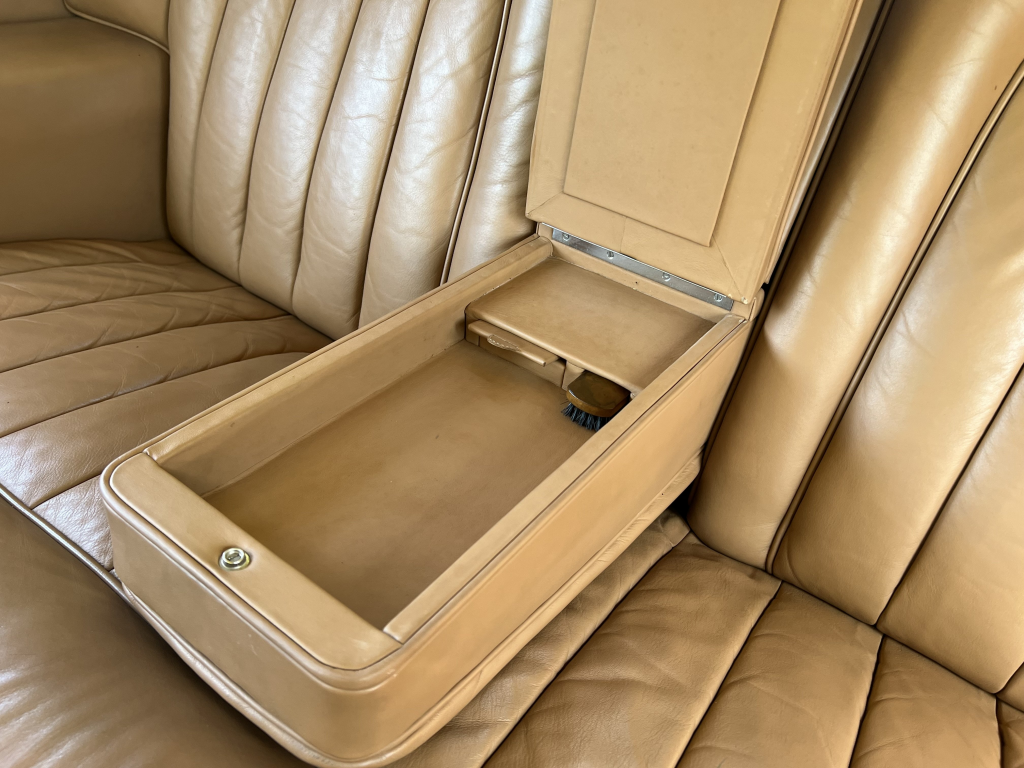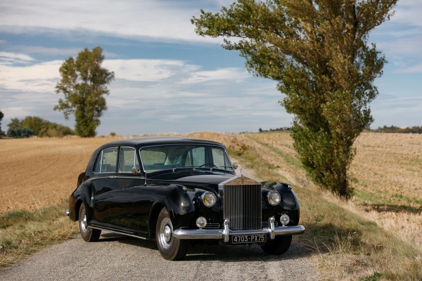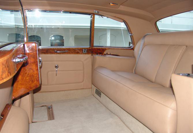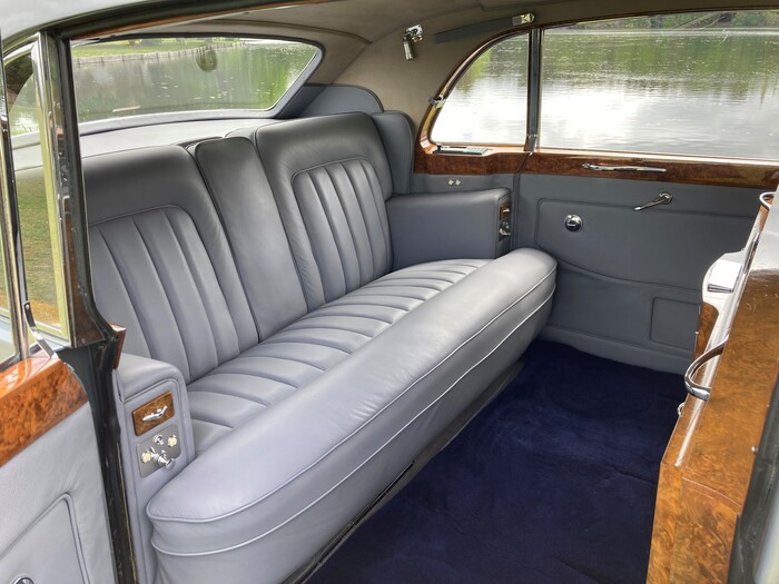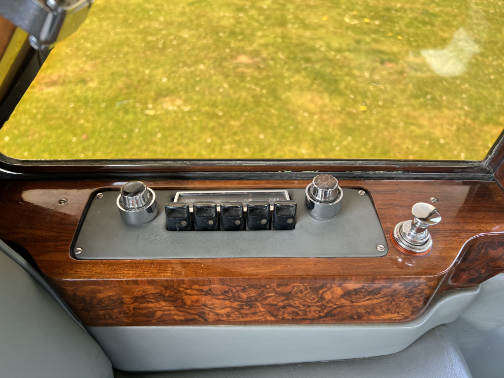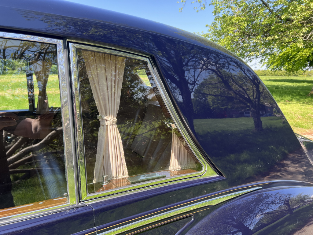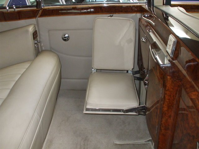 5 AT 76 : 1961, Sedanca de Ville par James Young (caisse 9117), moteur PV88A, bleu marine filets blancs (James Young Midnight Blue), cuir Connolly beige à l’avant (VM 3210), drap beige William Playne à l’arrière, moquettes en laine grise, pas de sièges supplémentaires remplacés par 2 cocktail cabinet avec verrerie en cristal et nécessaire de fumeur, 2 picnic tables, accoudoir avec miroir garni de cuir boîte à cigarettes et briquet, calepin avec stylo et brosse, immatriculation ET 36.