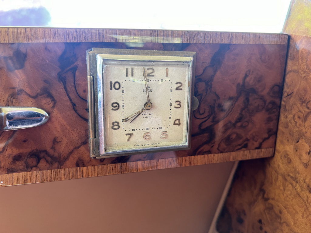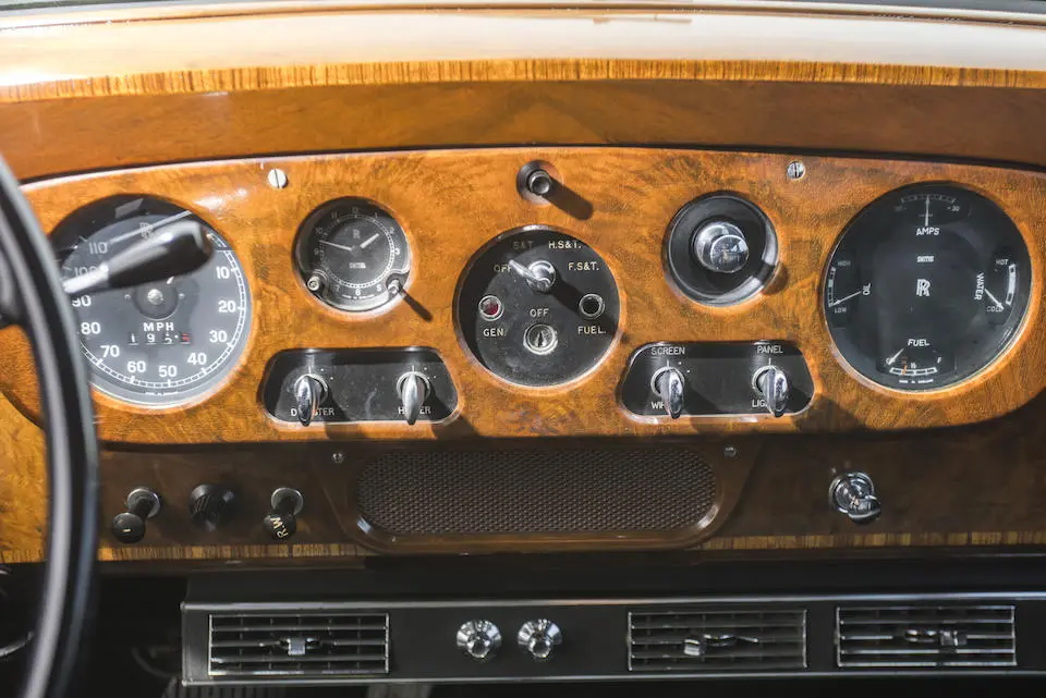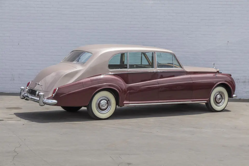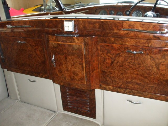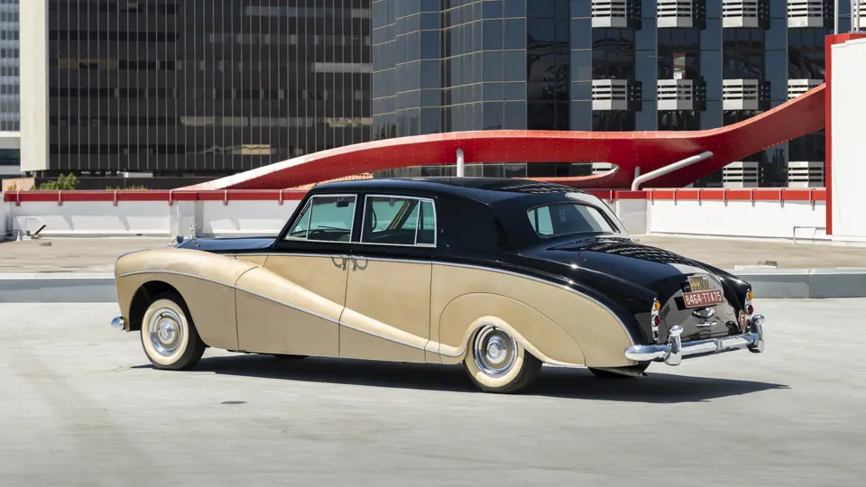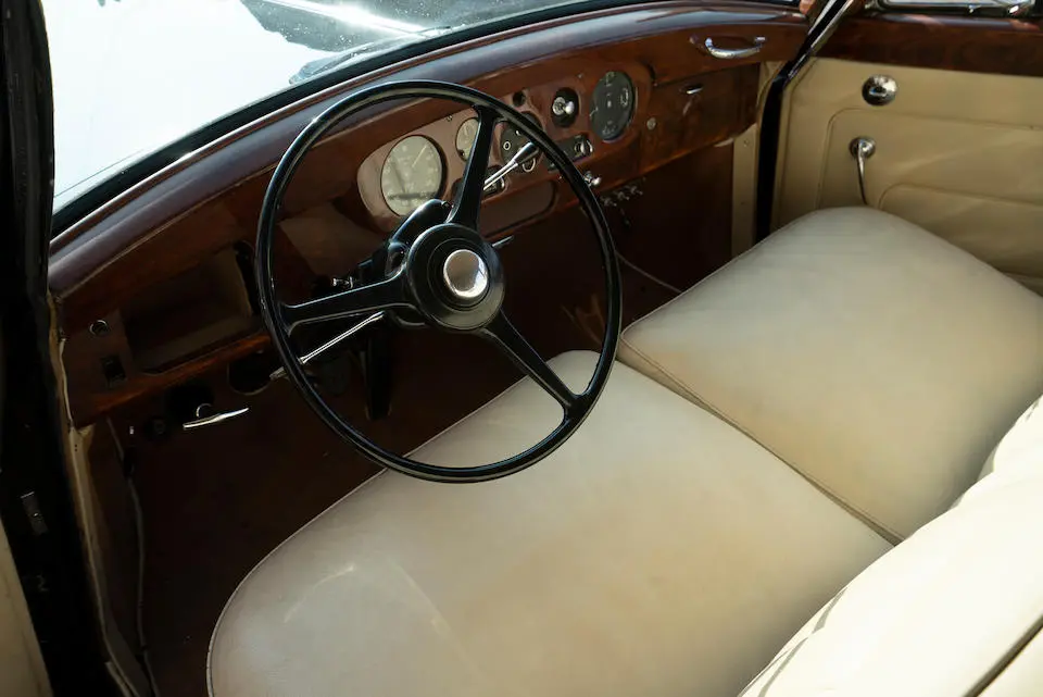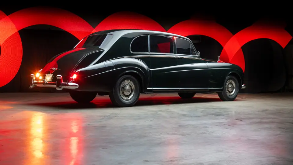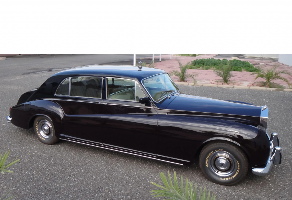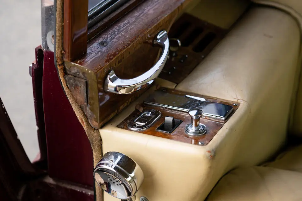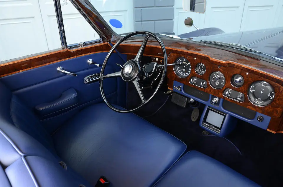 5 AT 76 : 1961, Sedanca de Ville par James Young (caisse 9117), moteur PV88A, bleu marine filets blancs (James Young Midnight Blue), cuir Connolly beige à l’avant (VM 3210), drap beige William Playne à l’arrière, moquettes en laine grise, pas de sièges supplémentaires remplacés par 2 cocktail cabinet avec verrerie en cristal et nécessaire de fumeur, 2 picnic tables, accoudoir avec miroir garni de cuir boîte à cigarettes et briquet, calepin avec stylo et brosse, immatriculation ET 36.