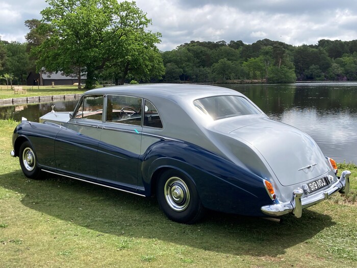 5 L VF 45 : 13/09/1966, Touring Limousine par James Young (style PV23, caisse 9230), 1/13 de ce type, CAG, moteur F22PV, climatisation, radio avec antenne électrique Hirschmann, vitres teintées, vitres à commande électrique, liseuses et cocktail cabinet arrière, picnic tables repliables, accoudoir central avec coffret contenant un miroir, crayon, brosse, et calepin, Midnight Blue/Tudor Grey, cuir bleu avant/drap bleu arrière.
