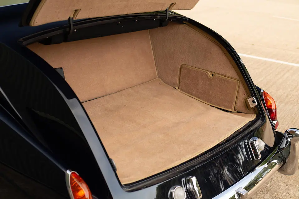 5 L AT 12 : 1960, Limousine par Park Ward (caisse 19635), moteur V56A, CAG, normes US, avertisseurs sonores Windtone, pneus flancs blancs Dunlop, vitres électriques, radio Blue Spot Kohn avec haut-parleur et réglage arrière, cocktail cabinet avec carafes et verres, compartiment contenant calepin, miroir et boîte à cigarettes, Noire, cuir gris/tissu gris,
