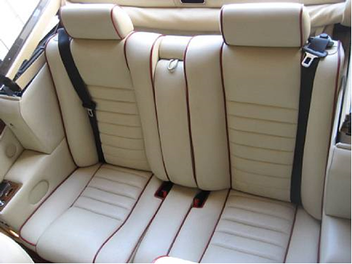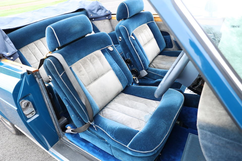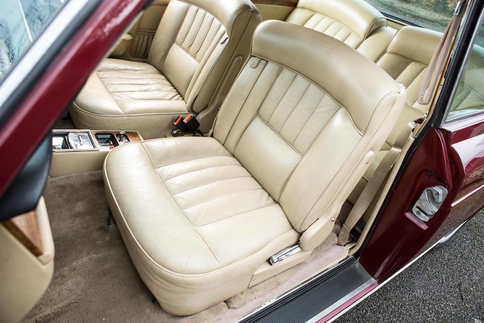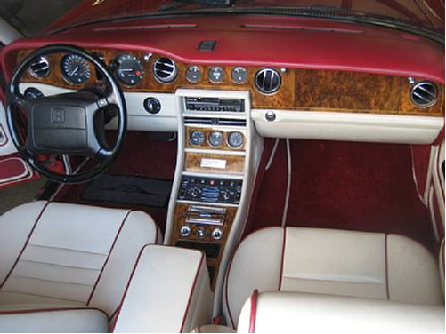 Les peaux (Connolly) sont découpées au couteau sur des gabarits en bois, il faut 14 peaux pour le garnissage d’une voiture. Les tapis de sol sont fournis par Wilton et les placages bois sont montés par collage avec finitions, vernis et ponçage manuels. Seule la partie extérieure du tronc sur une portion entre 30 cm au dessus et au dessous de la terre des noyers d’Arizona est utilisée, un seul tronc est utilisée pour avoir des dessins identiques en accord pour chaque voiture et l’usine garde une planche en réserve pour d’éventuels travaux de rénovation. La voiture peut aussi recevoir des garnitures en drap.