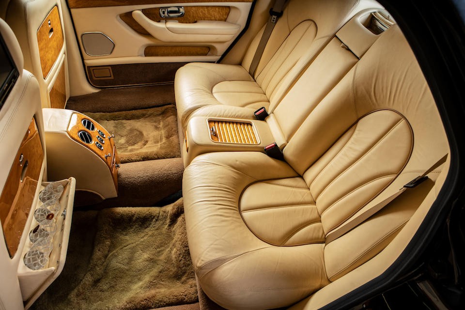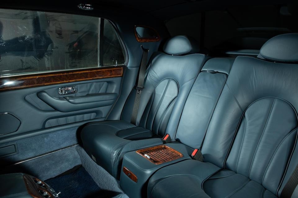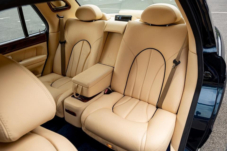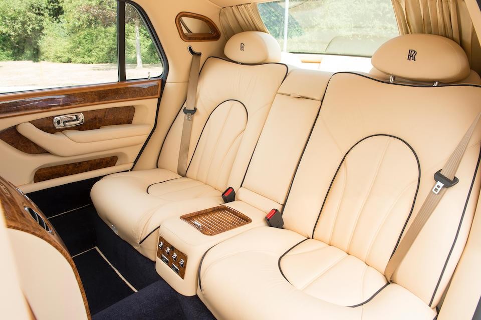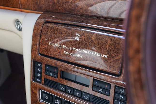 SCALD62E82CH19120 : 2002, Park Ward, dernière fabriquée à Crewe, mascotte de calandre en argent massif, badge Union Jack sur les ailes, haut des contreportes en bois de rose, plaques commémoratives, réfriqérateur dans l’accoudoir arrière central, kit main-libres, cocktail cabinet, stores arrières, Silver Ghost/Silver Tempest.