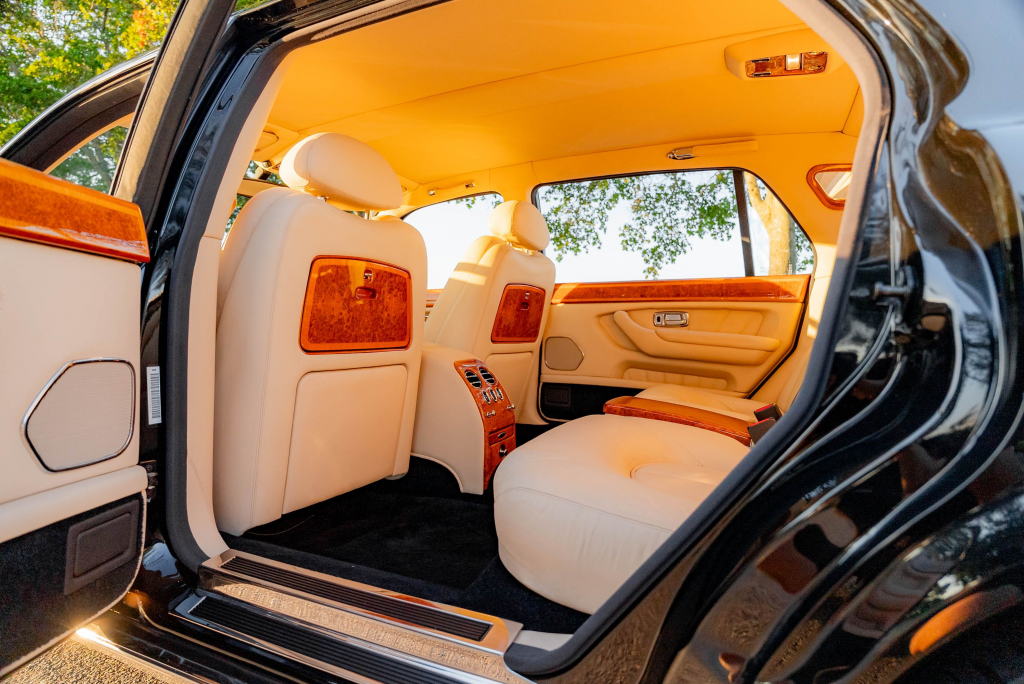 SCALD61E11CX07565 : 2001, Park Ward, enjoliveurs de roues chromés, picnic tables, réglage de climatisation à l’arrière, garnitures de portières avec boiseries, GPS, Noire, cuir champagne à passepoils.