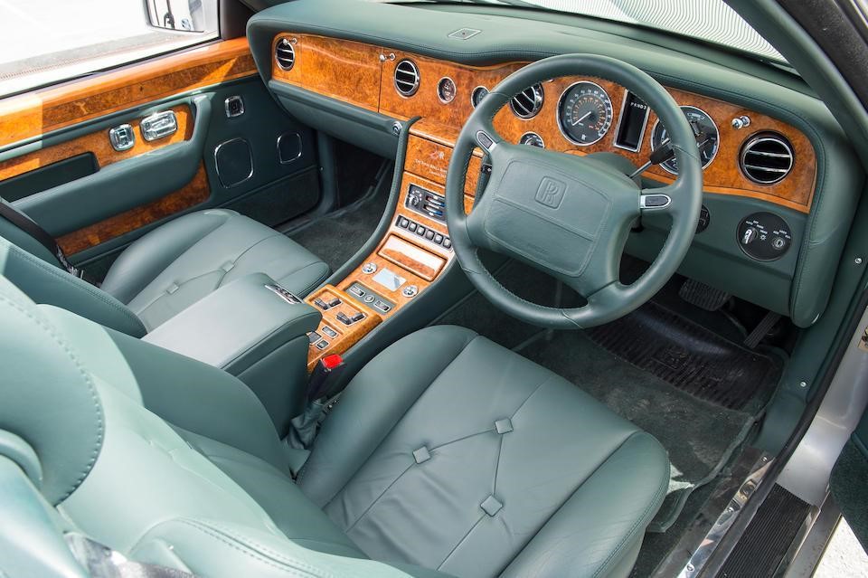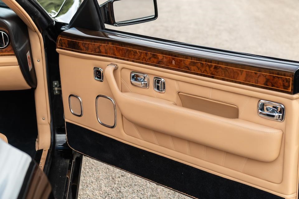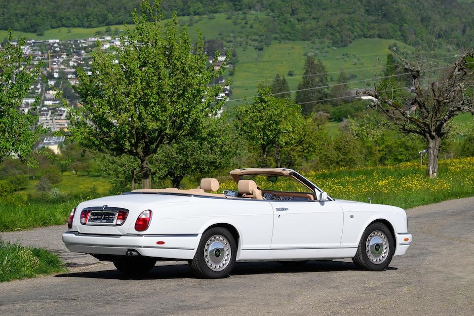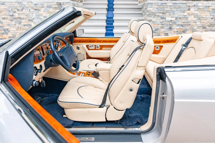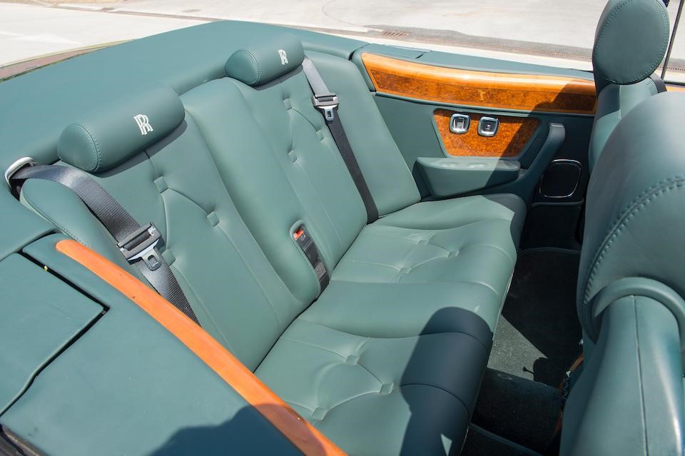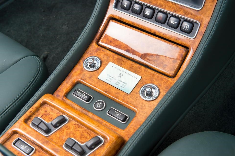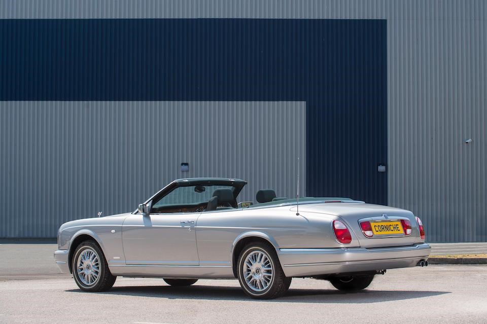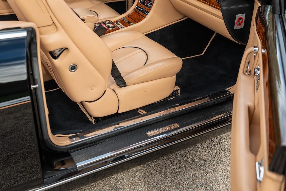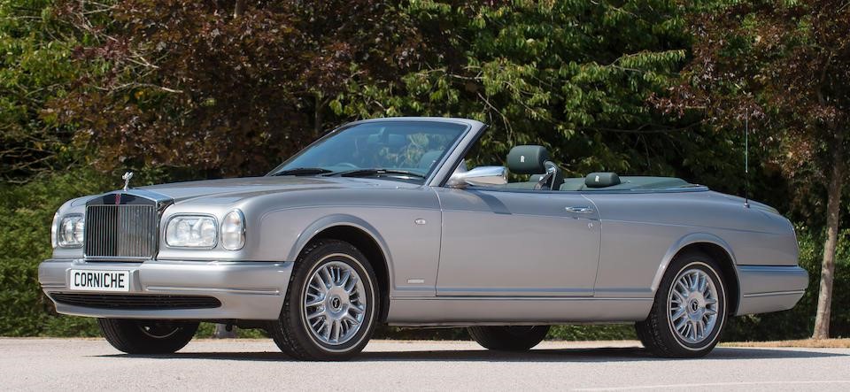 SCAZK28E72CH02079 : 2002, Corniche V Final Série, dernière de la série et dernière Rolls Royce fabriquée à l’usine de Crewe (G-B), mascotte en argent massif, plaque commémorative dans l’habitacle, sièges spécifiques, volant à cerclage en cerisier, boiseries en cerisier, kit main-libres, Silver Ghost, cuir Spruce, capote verte.