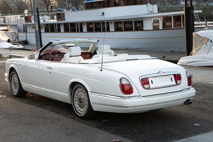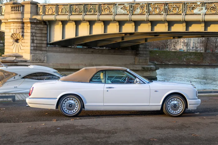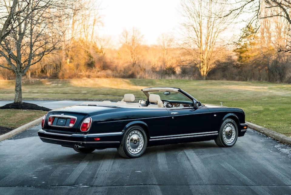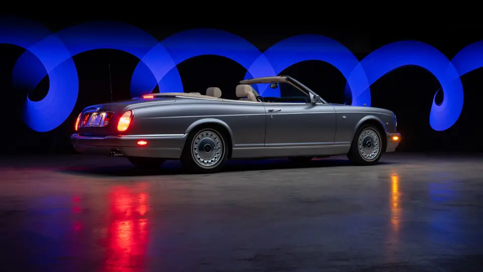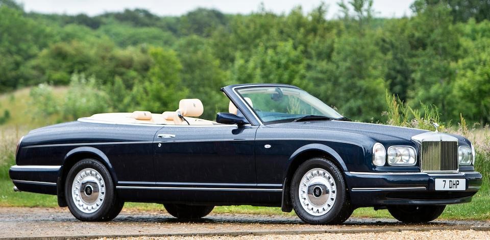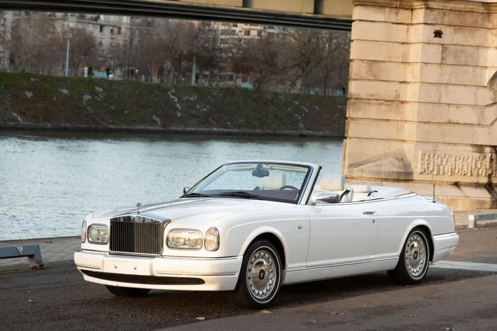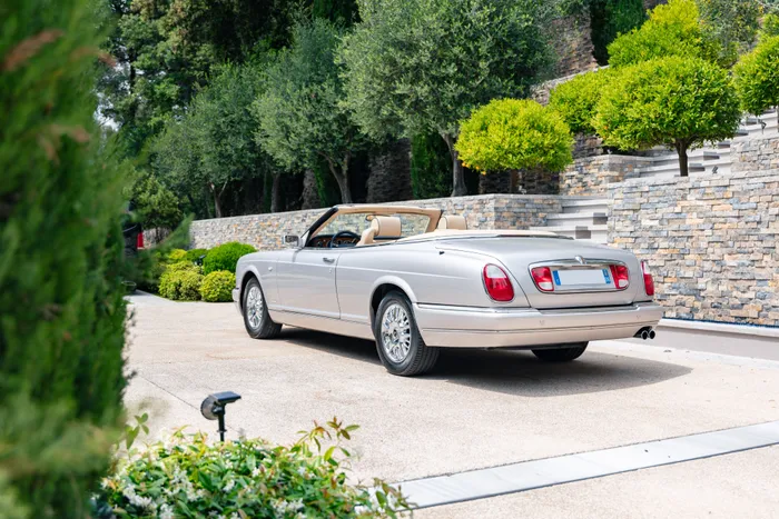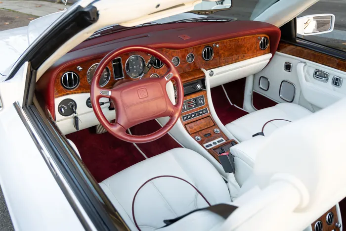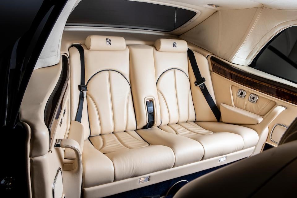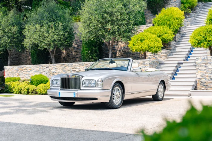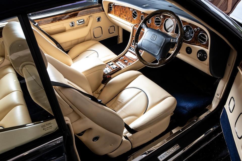 SCAZK28E72CH02079 : 2002, Corniche V Final Série, dernière de la série et dernière Rolls Royce fabriquée à l’usine de Crewe (G-B), mascotte en argent massif, plaque commémorative dans l’habitacle, sièges spécifiques, volant à cerclage en cerisier, boiseries en cerisier, kit main-libres, Silver Ghost, cuir Spruce, capote verte.