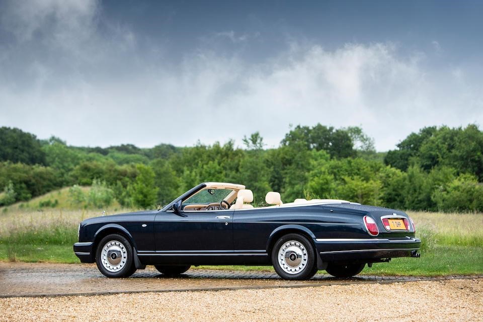 SCAZK28E82CX02069 : 2003, Corniche V Final Séries (1/56), CAG (1/45), Silver Storm Metallic, cuir crème à passepoils noirs, capote bleu nuit.