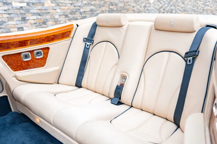 SCAZK29EXYCH68156 : 2000, CAD, rétroviseurs de la couleur de la caisse, volant cuir Navy Blue/bois, logos RR brodés dans les appuie-têtes, système audio Alpine CDE-178BT, 8 haut-parleurs Audison, amplificateur 4x130W avec bluetooth, Royal Blue, cuir magnolia à passepoils bleus, moquettes bleues, capote bleue.