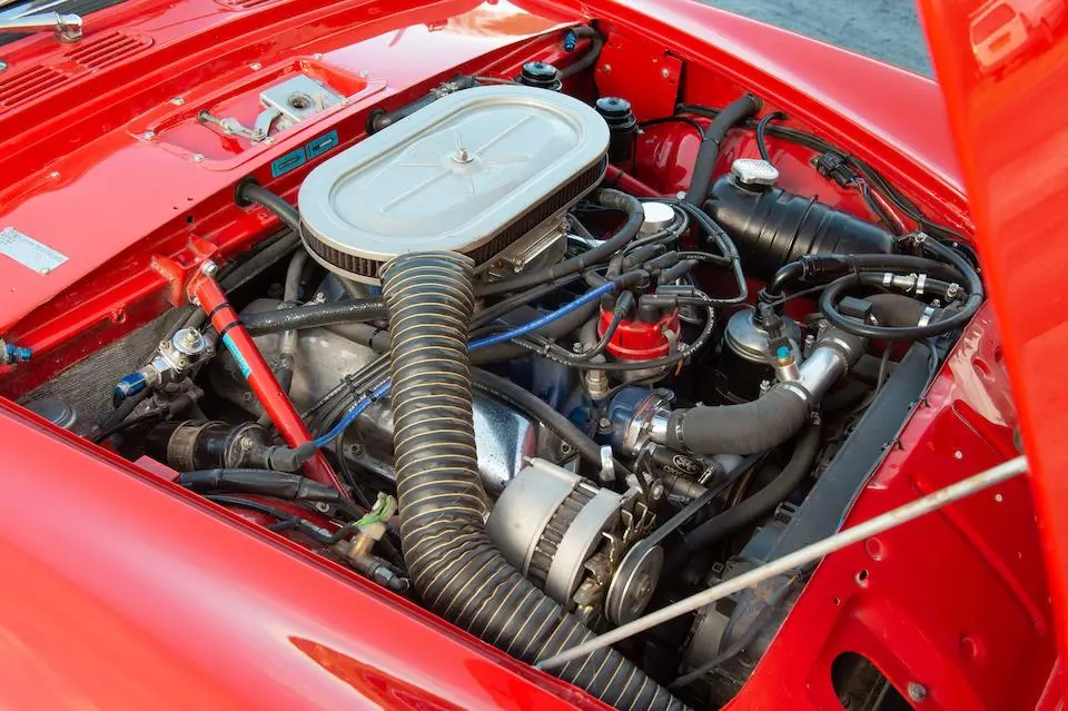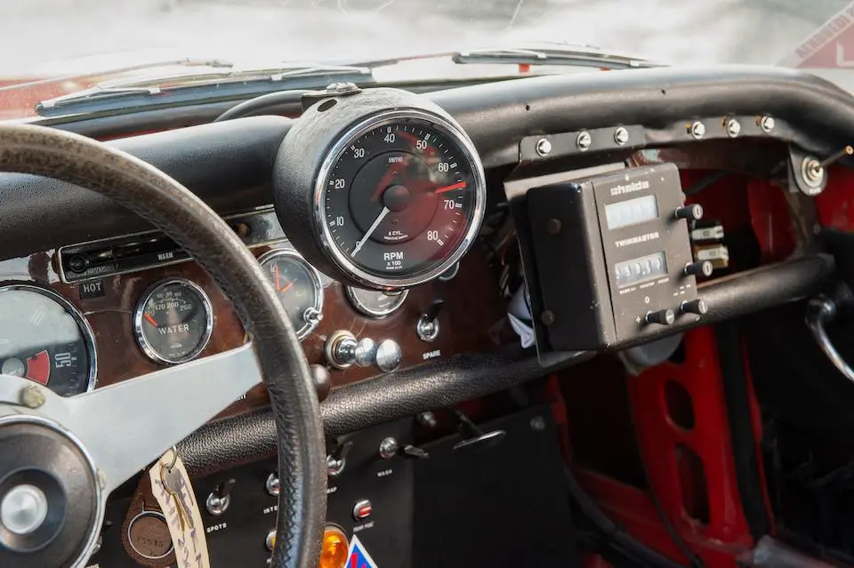 B 9109464 : 1964, Alpine S 4, 1er prototype de la Tiger (2 voitures de pré-production), moteur Ford 260 ci, boîte de vitesses automatique à 2 rapports, jantes 13 pouces en magnésium American Racing Silverstone, Candy Apple red, intérieur noir.