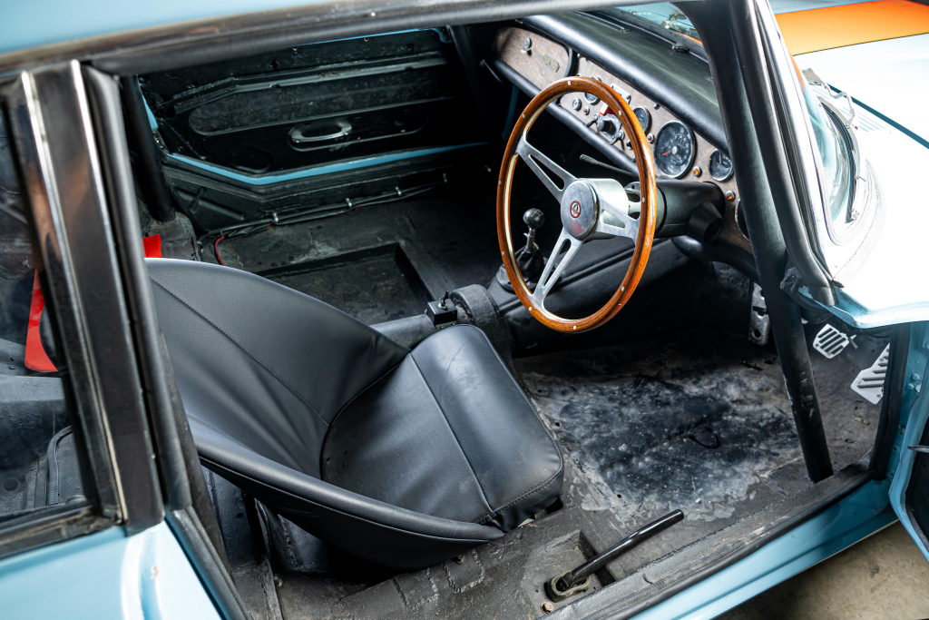 Moteur Série V, 2 carburateurs Weber, Bleu clair métallisé, cuir bleu foncé.