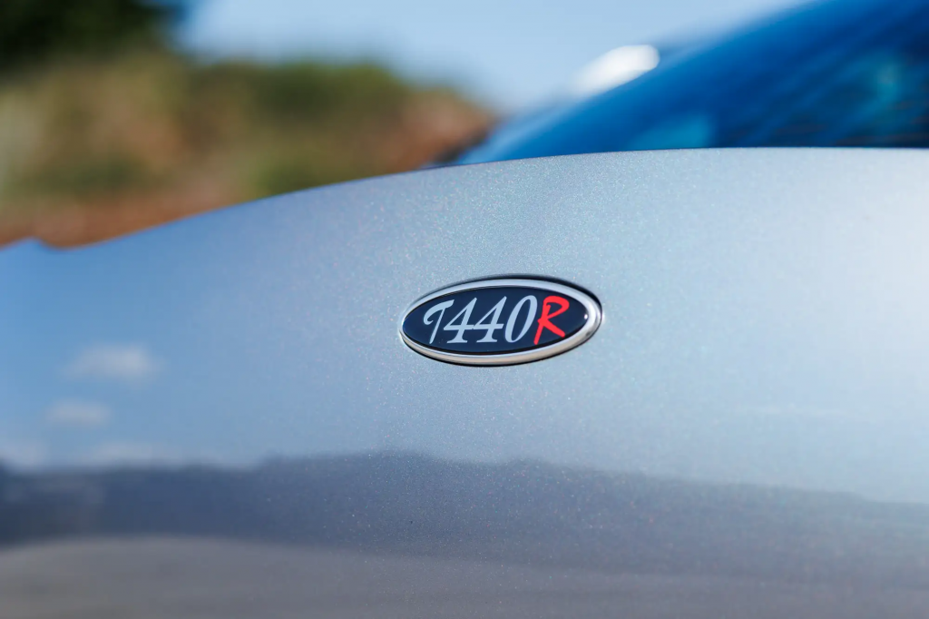 SDLGA18A92B001252 : 2003, T440R, la seule homologuée sur route, moteur P6423422, puissance abaissée à 440 ch., aucune aide à la conduite (ABS, contrôle de la stabilité, airbags), arceau-cage gainé cuir, Spectraflair Titanium.