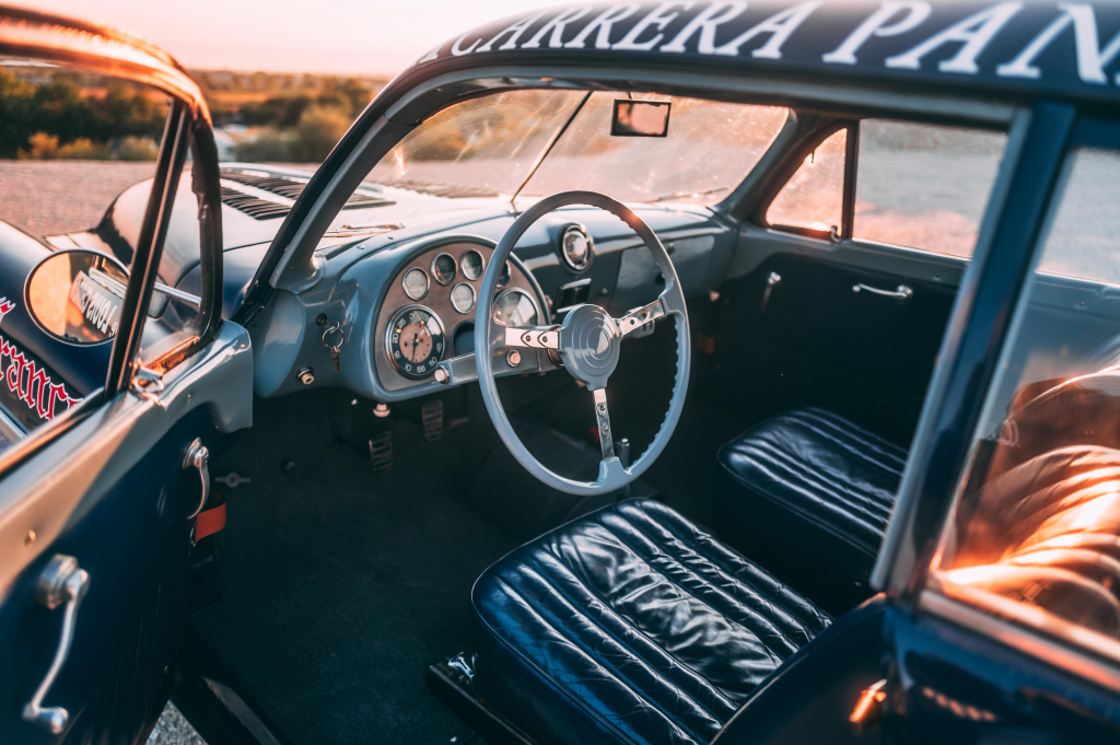 20-25/11/1951 : Carrera Panamericana, bleu foncé, prise d’air sur le capot : n°4, Chiron-Mariotti, Disq., hors délai.