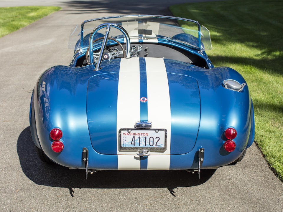 CSX 3011 : 14/05/1965, AC 427 Racing, jantes en magnésium Halibrand, Guardsman Blue, bandes blanches,
