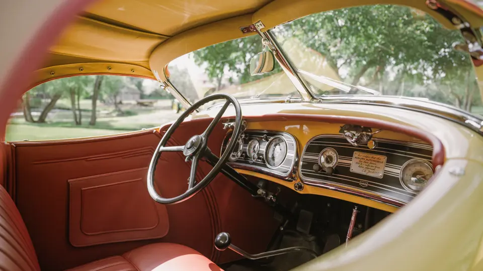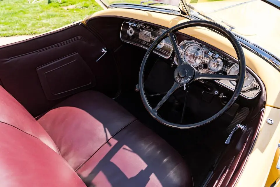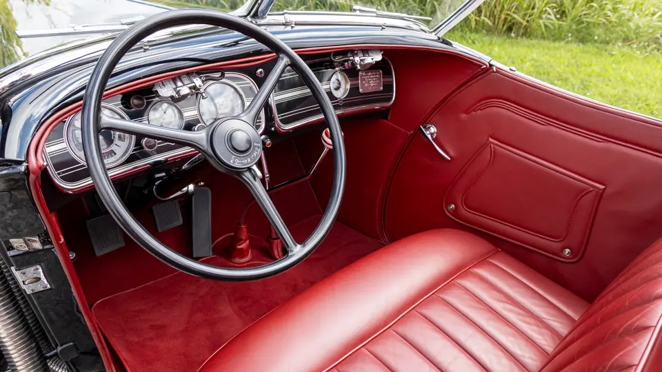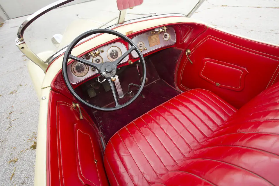 33175E : 1935, 851 Speedster Compresseur (caisse A35-309), moteur GH 4434, Ivoire, cuir rouge.