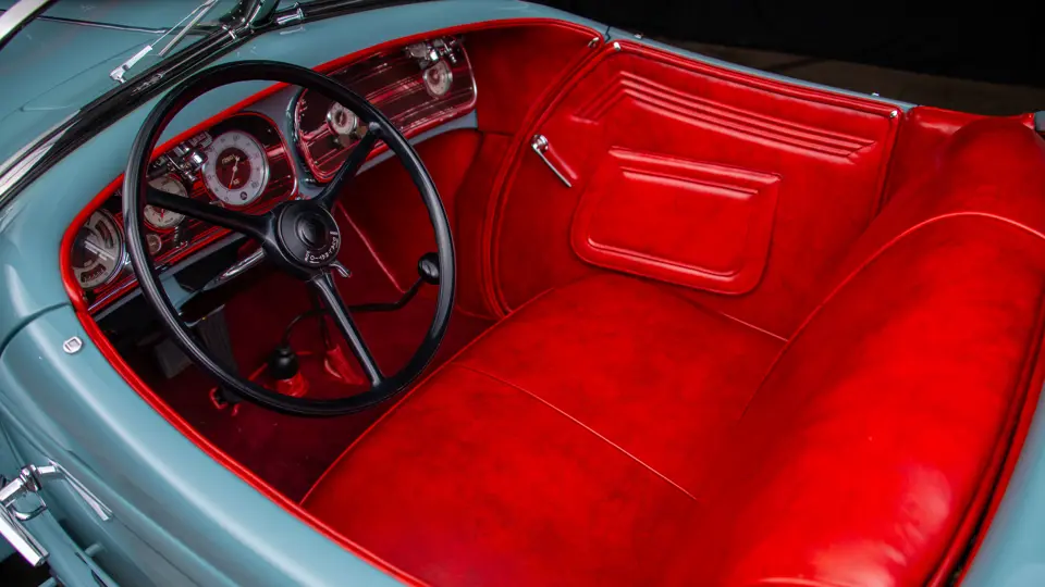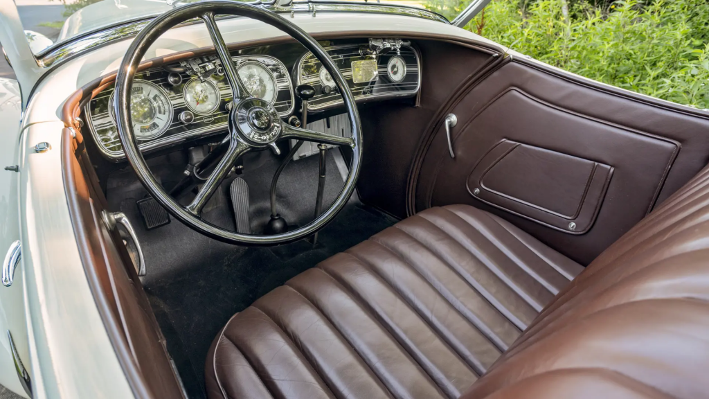 851 2988E (1988): 1935, 851 Custom Speedster, la seule sans compresseur, montée dans l’usine d’Auburn, Ind. (USA) et non dans celle de Connersvillle comme les modèles suivants, moteur CG3777, pont arrière à 2 rapports de ponts Dual Ratio, Duck Egg Blue, cuir rouge.