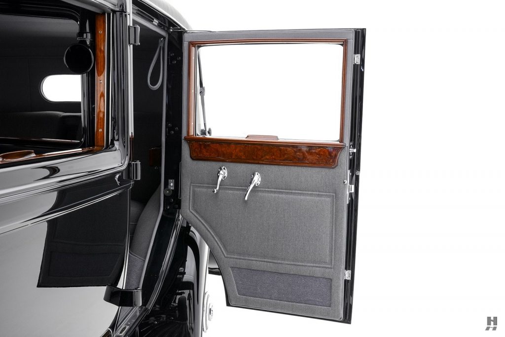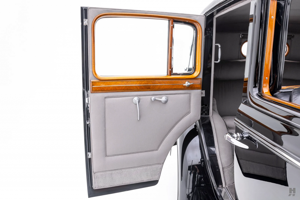 Style 4225 : Transformable Town cabriolet 4 portes, partie découvrable au dessus du conducteur, pare-brise plat incliné de 7°, séparation avec store en soie, boiseries en noyer avec incrustations ébène, accoudoir arrière escamotable, sièges arrières réglables. Toit recouvert cuir avec faux compas arrière, pas de vitres de custode.
