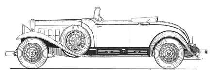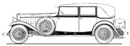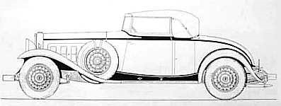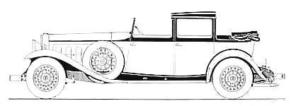 Style 4235 : Convertible Coupé : Roadster 2 portes, 2 places avec ou sans dickey seat (coffre agrandi), pare-brise incliné de 21°, avec encadrements en aluminium poli, marchepied incurvé, moulure de caisse horizontale.