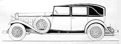 Style 4161 : Impérial club sedan 4 portes, style Mme X, pare-brise incliné de 18°. Pas de vitre de custode arrière, toit recouvert de cuir de mouton, marchepieds droits, séparation.