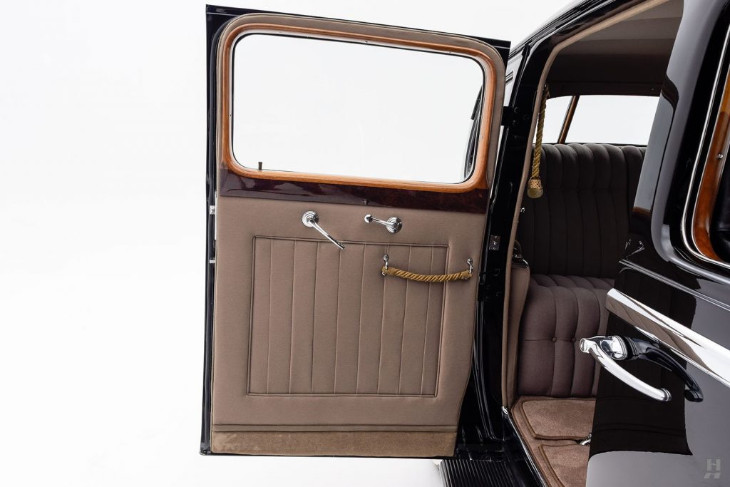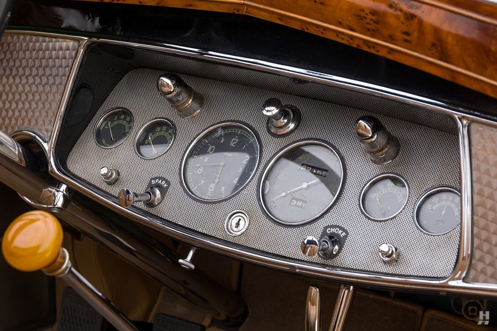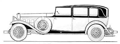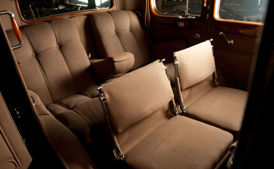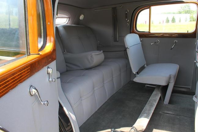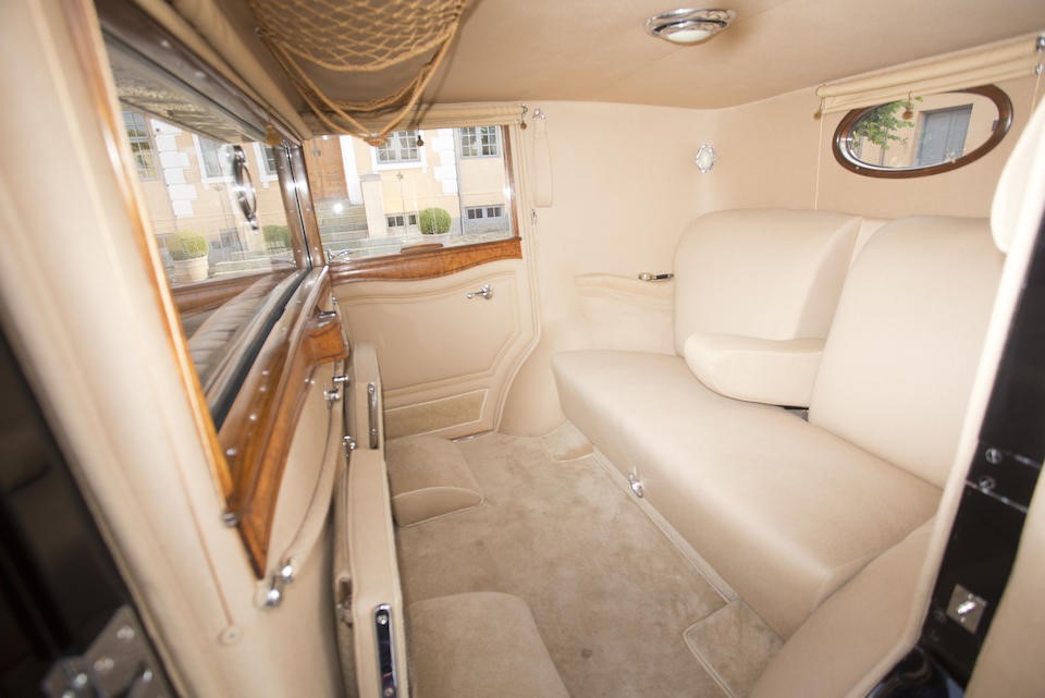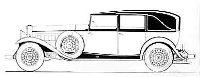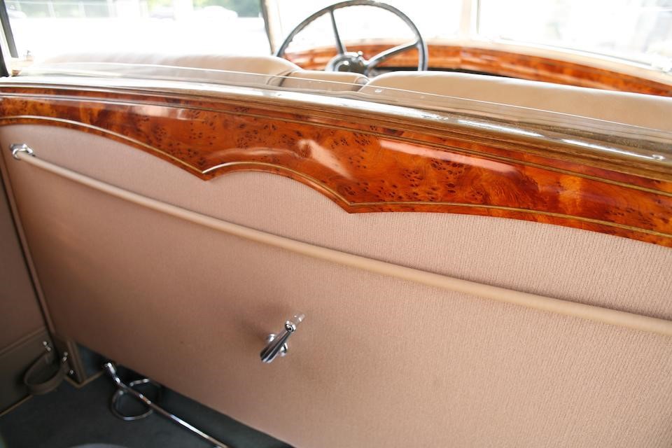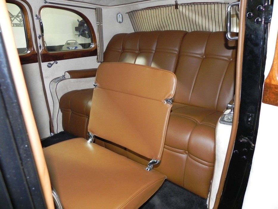 Style 4212 : Transformable Town car cabriolet 4 portes, pare-brise plat incliné de 7°. Boiseries en noyer avec incrustations ébène, montre 8 jours Jaeger, séparation, interphone, pré-équipement radio, repose-pieds arrières, accoudoir central escamotable arrière, sièges arrières réglables, stores en soie. Toit recouvert cuir avec faux compas arrière, pas de vitres de custode arrière.