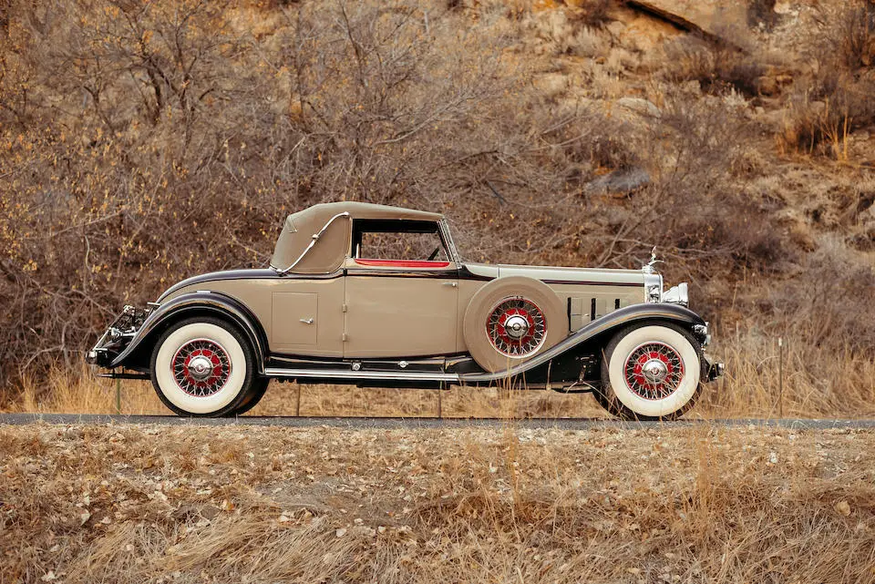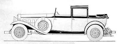 Style 4335 : Convertible Coupé par Fleetwood, comme le 4235 mais : pare-brise en V (7°), charnières de portes à l’arrière (suicide doors), capot bombé dans le style LeBaron, fabrication dans les ateliers Fleetwood en Pennsylvanie avant le déménagement de la firme à Detroit en 1930, appellation a posteriori Pennsylvania Windshield.