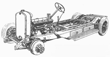 Suspensions avant et arrières par essieux rigides avec ressorts semi-elliptiques à lames.
