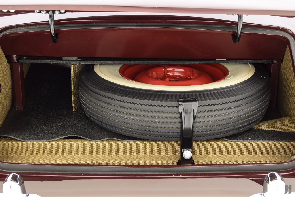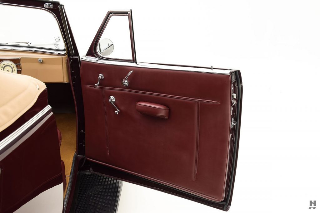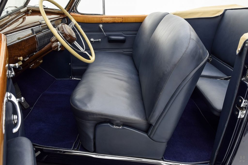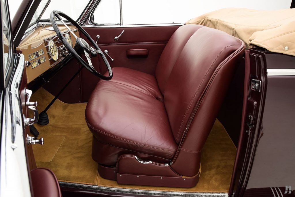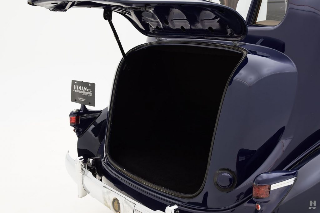 1938 : Levier de vitesses sur la colonne de direction, dispositif de roue libre Synchro-Flex, pont arrière hypoïde, avertisseurs cachés derrière la calandre, batterie repositionnée sous le capot moteur, silencieux d’échappement transversal positionné devant le réservoir d’essence, suppression du filtre à huile. Taux de compression augmenté à 6,70 :1 portant la puissance à 140 chevaux mais nécessitant une essence à taux d’octane plus élevé.