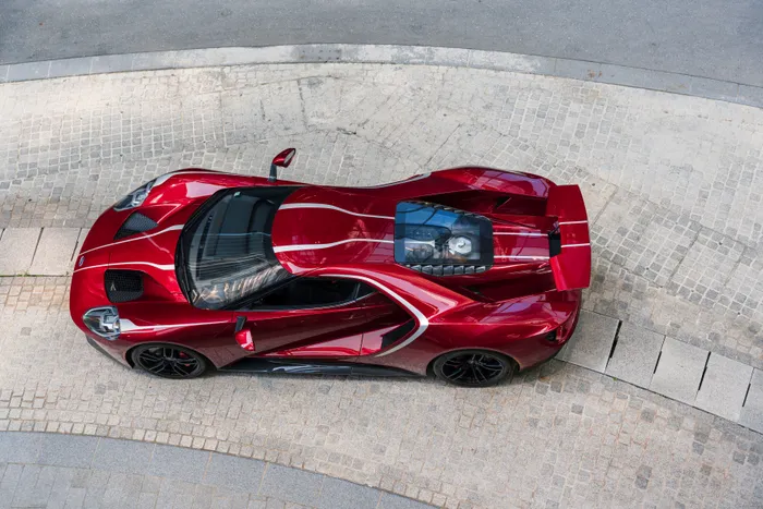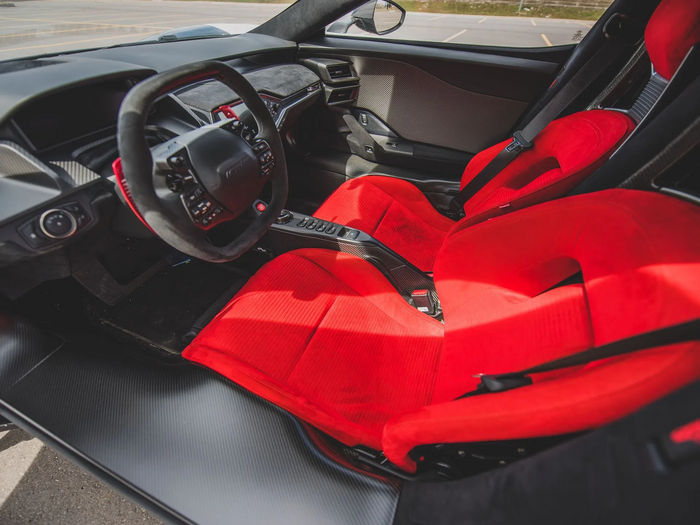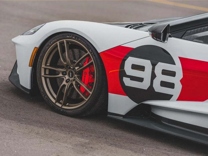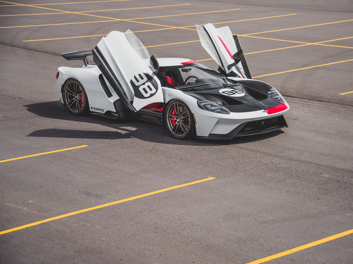 2FAGP9EW6MH200061 : 2021, GT Heritage Edition, jantes or, coque de rétroviseurs extérieurs carbone, package carbone extérieur, étriers Race Red, harnais 6 points, volant Heritage, Frozen White, intérieur rouge.