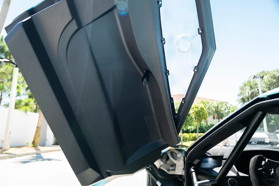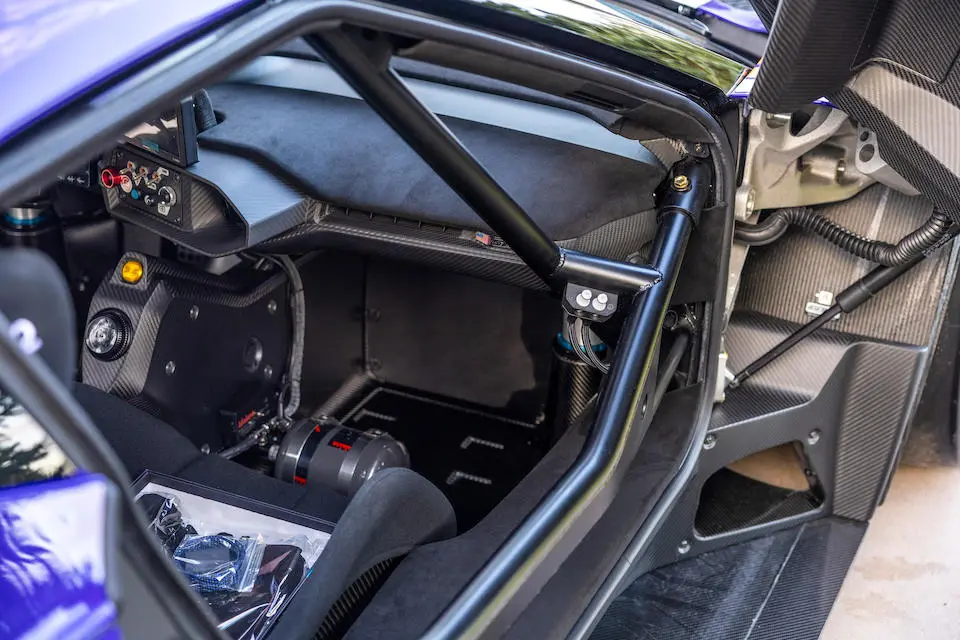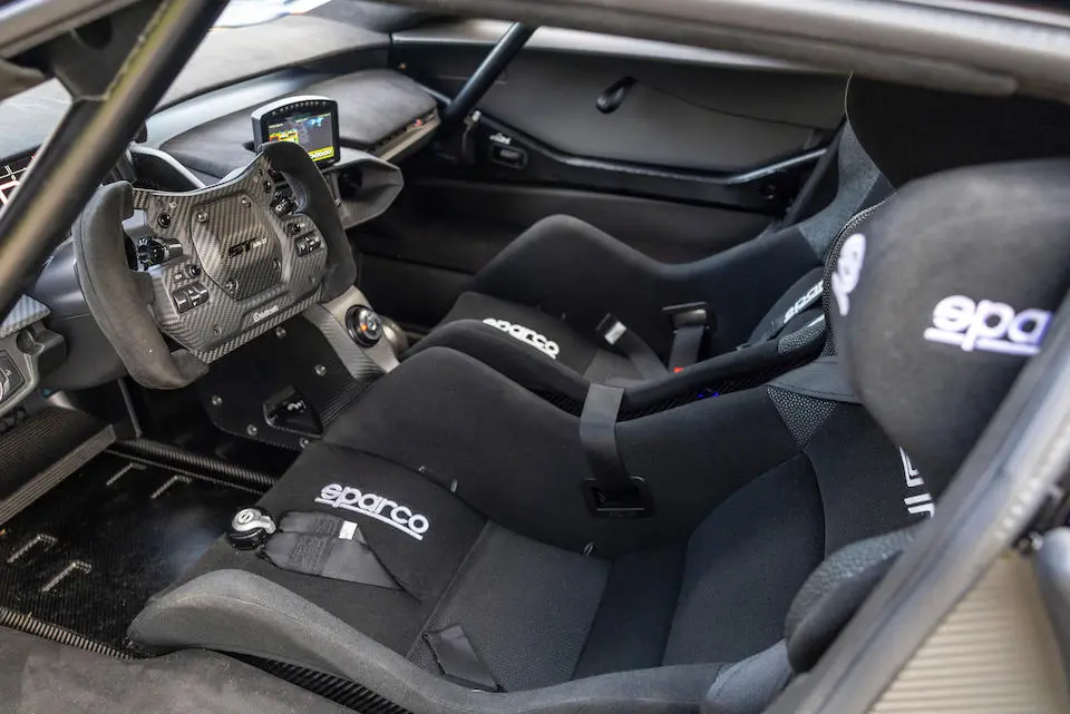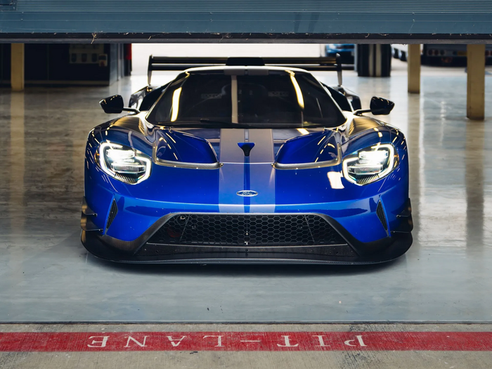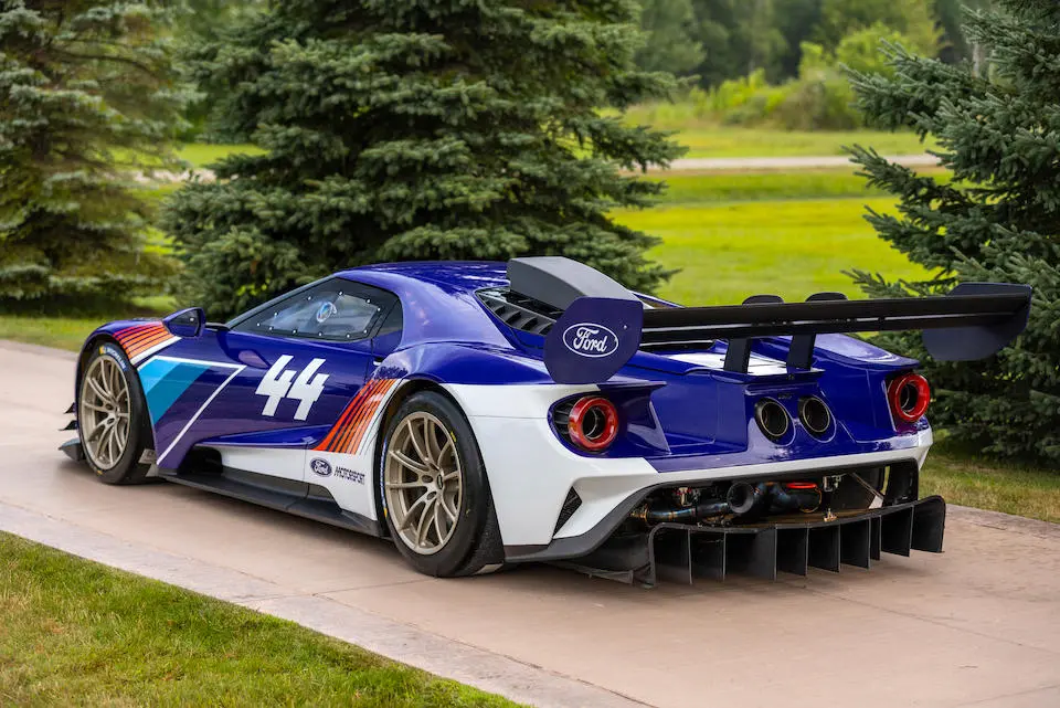 FP-MM-MKII-044 : 2021, GT40 MKII/Comp., 44e/45, crics pneumatiques, sièges Sparco, harnais 6 points, arceau-cage, système de télétransmission MoTeC, rétrocaméra, radio avec intercom, Bleue/Blanche, bandes rouges et orange,