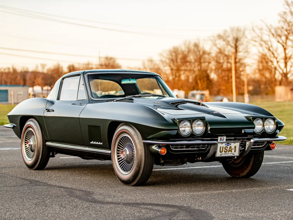 # 194377S108317 : 17/01/1967, Coupé L71, moteur T122 OJE 7108317, 427/435 ch, 1/437, boîte de vitesses manuelle 4 rapports rapprochés, différentiel autobloquant Positraction, rapport de pont : 4,11 : 1, allumage transistorisé, échappement libéré, pare-brise teinté, radio AM/FM, Goodwood Green, intérieur noir.