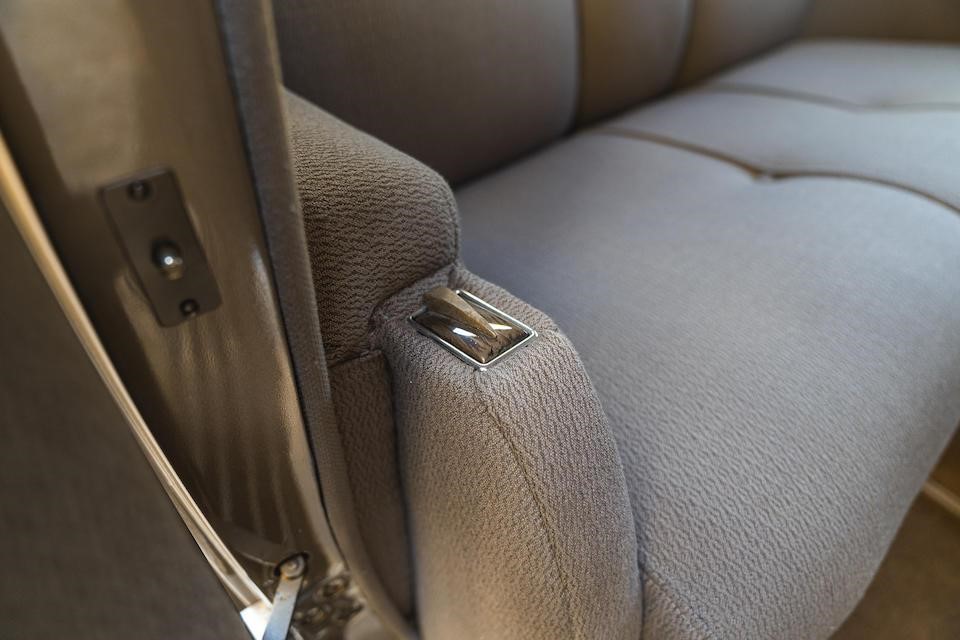 Habitacle avec banquette avant et arrière à 3 places montées sur tubes inox et réglables pour améliorer la climatisation. Sièges placés en avant de l’essieu arrière abaissant le centre de gravité et améliorant le comportement routier.