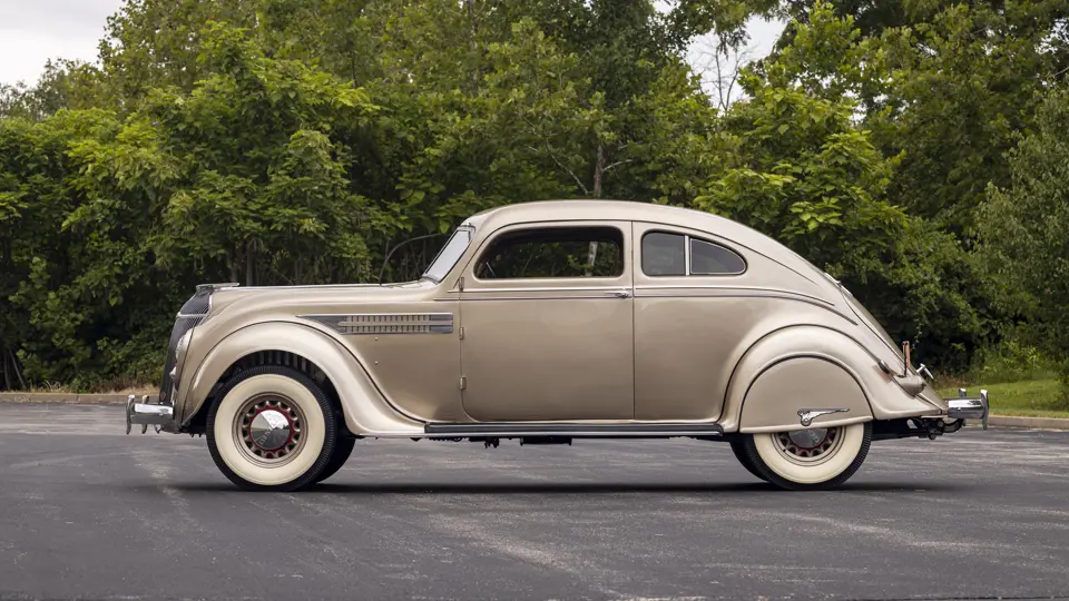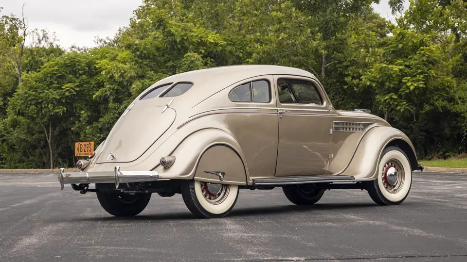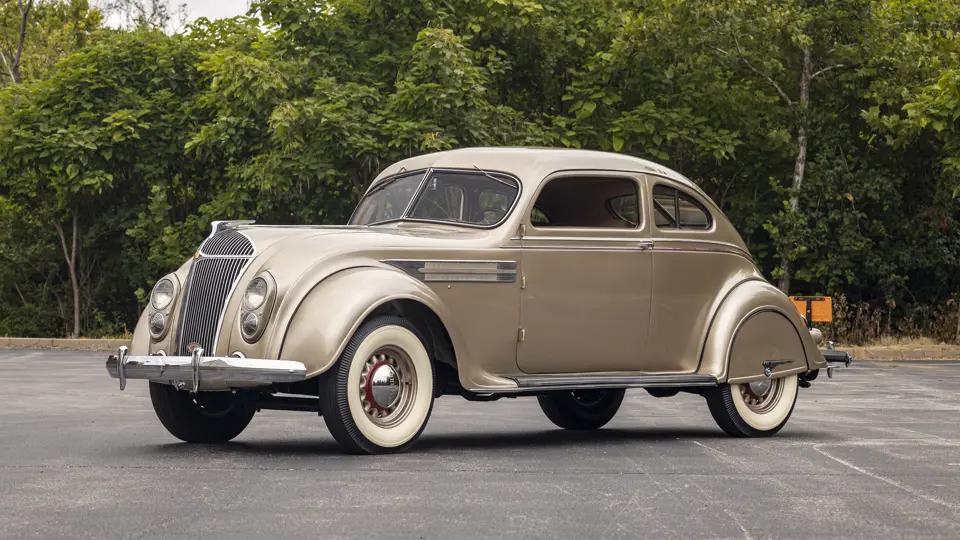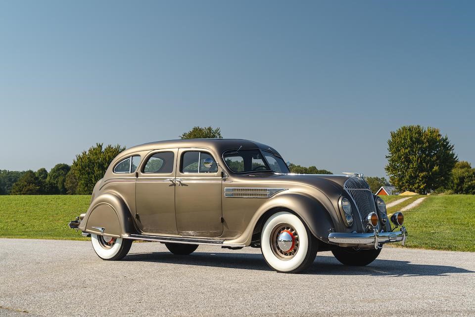 Carl Breer, ingénieur en chef chargé de la recherche en mécanique de la Chrysler Corp et à l’origine de ce modèle. Lors des vacances d’été 1927 près de Highland Park il a l’occasion de parcourir une route bien droite à Gratiot Beach il remarque un groupe d’avions de l’Air Force évoluant comme des oies sauvages. Il compare alors les formes fuselées des avions avec les lignes carrées des caisses de voitures et découvre que la forme de la voiture utilise beaucoup de la puissance. Breer contacte alors Bill Earnshaw, ingénieur de Dayton, pour évaluer le comportement de l’air sur des voitures conventionnelles. Les essais montrent que la forme carrée des voitures absorbe une grande partie de la puissance disponible. Il décide alors de construire un tunnel aérodynamique et teste des morceaux de bois de formes variables (dirigeable, goutte d’eau…) avant de mettre en service d’un deuxième tunnel de soufflerie plus large au Centre de Recherches Chrysler à Highland Park. Des essais sont réalisés jusqu’en 1931 avec des modèles réduits de formes idéales. Breer utilise de l’huile de lin et du noir de fumée avec l’aide de Oliver H. Clark, ingénieur en chef de la carrosserie pour visualiser les filets d’air. En 1930 Breer constate qu’une berline conventionnelle provoque moins de résistance à l’air en marche arrière qu’en marche avant ce qui aboutit en novembre 1933 à transformer une berline DeSoto en installant une vitre arrière panoramique, un tableau de bord monté à l’envers devant les sièges arrières et une boîte de vitesses inversée qui valide la théorie de Breer. La De Soto effectue le trajet Michigan-New-York en marche arrière pilotée par Harry Hartz avec une puissance accrue de 20%.