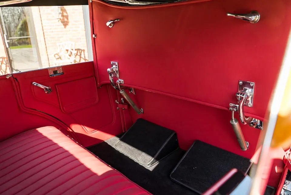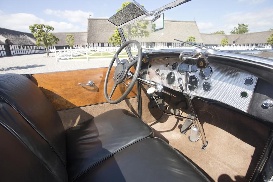 Recarrossée en Berline à toit ouvrant par Franay, séparation, stores à l’arrière, caisse d’origine montée sur J-516 (J, LWB).