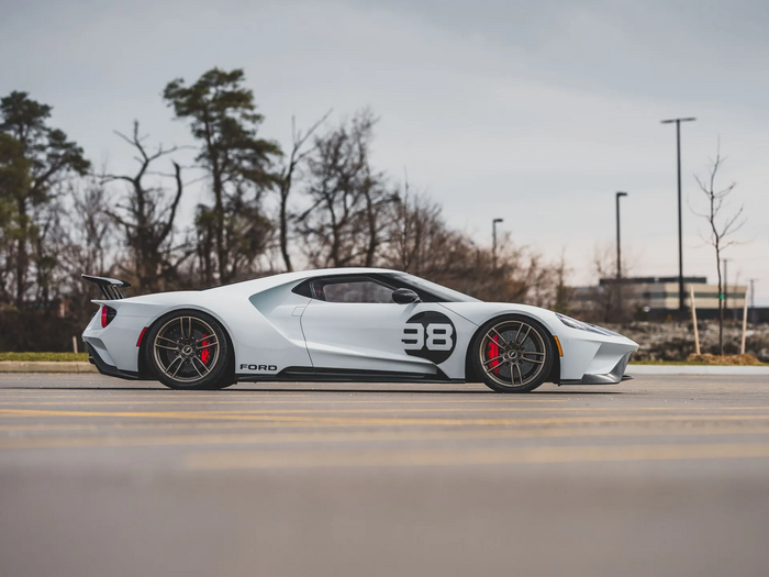 2021 : Ford présente une version GT Heritage Edition pour commémorer la victoire de la GT40 MK II aux 24 Heures du Mans 1966 (n°98, Miles-Ruby).