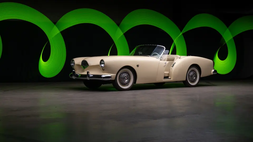 La carrosserie roadster 2 places fine et allongée à recourt à des éléments de la grande série (pare-chocs de la Henry J, feux arrières Kaiser 1952) avec un avant courbe à angles vifs et des ailes classiques délimitant une petite calandre triangulaire, un pare-brise bombé en 2 parties évoquant le pare-brise en forme de cœur de la Kaiser 1951 et des flancs continus avec un ressaut arrière (Darrin dip dans le style du décrochement des carrosseries françaises d’avant-guerre). Un logement spécial devant le coffre sert de rangement pour la capote.